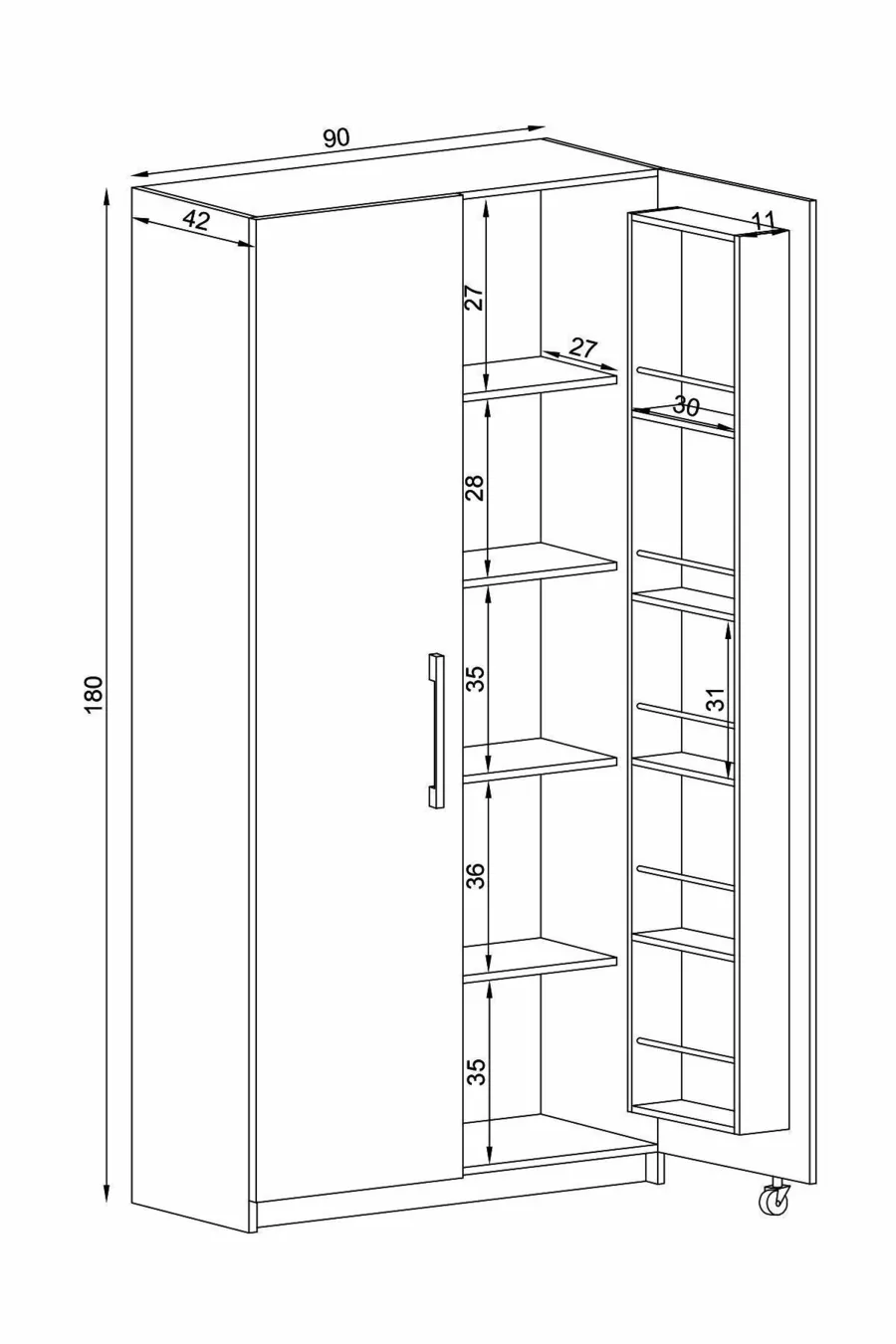 Материал: Плоча с фурнир Брой чекмеджета: 1 Цвят: Кафяв Модел: Вертикален Височина: 180 см Ширина: 90 см Дълбочина: 42 см Гаранционен срок: 1 година Стил: Модерен Тема/Стил: Модерен