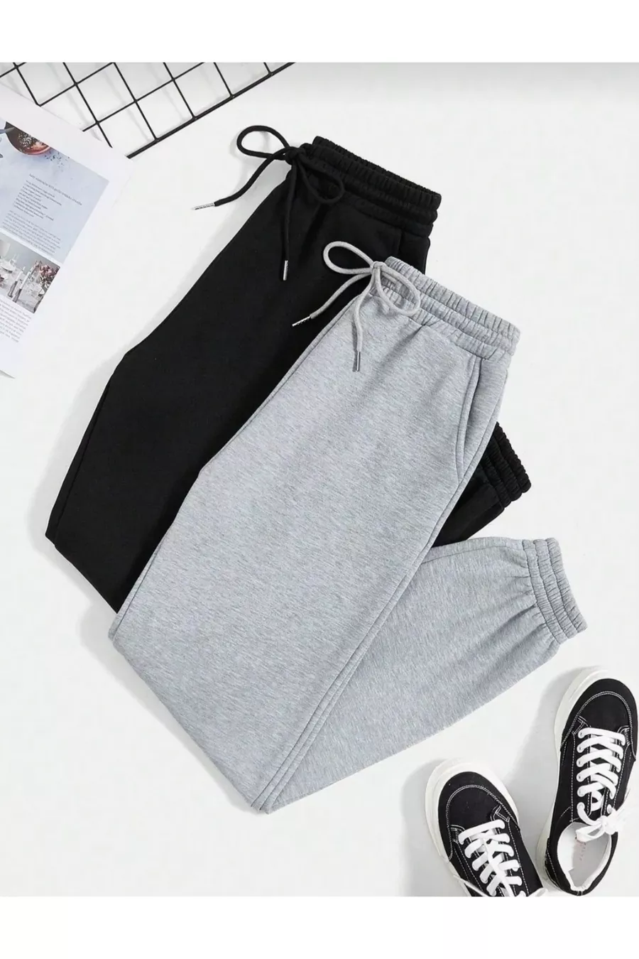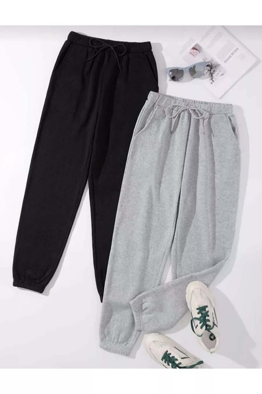 2 броя спортен панталон тип джогър - черен и сив с ластик в края и висока талия