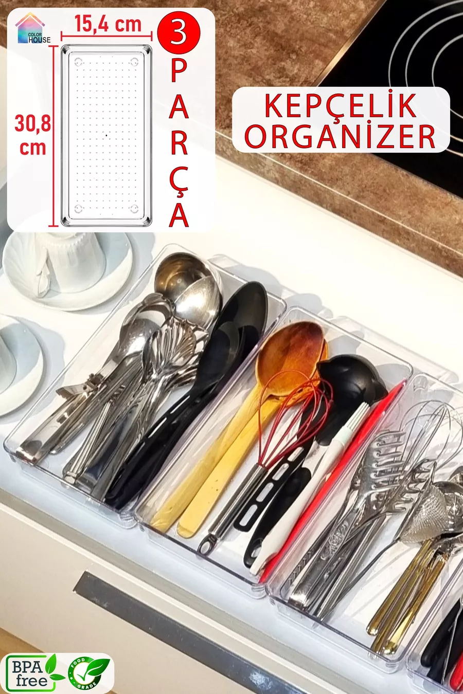 3 броя прозрачни органайзери за чекмедже за лъжици ( ,8 см * ,4 см брой)