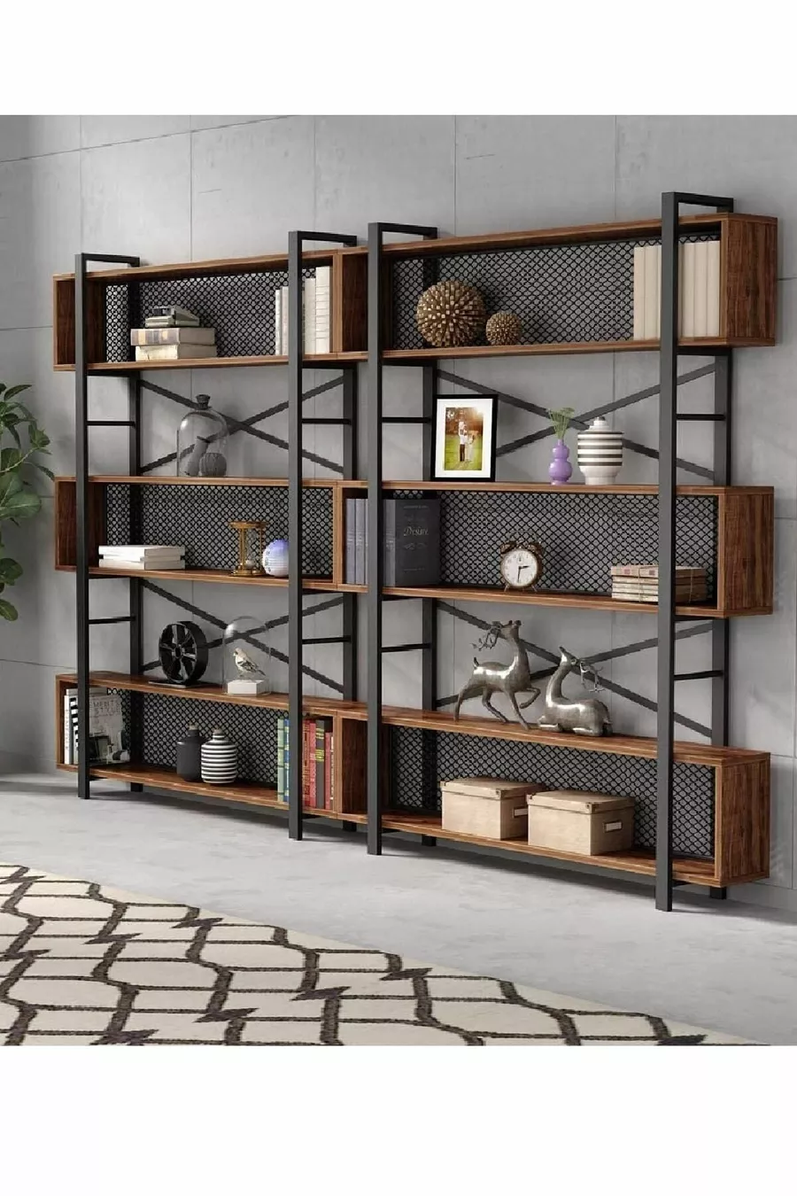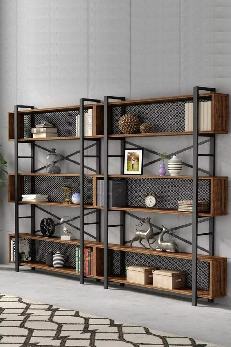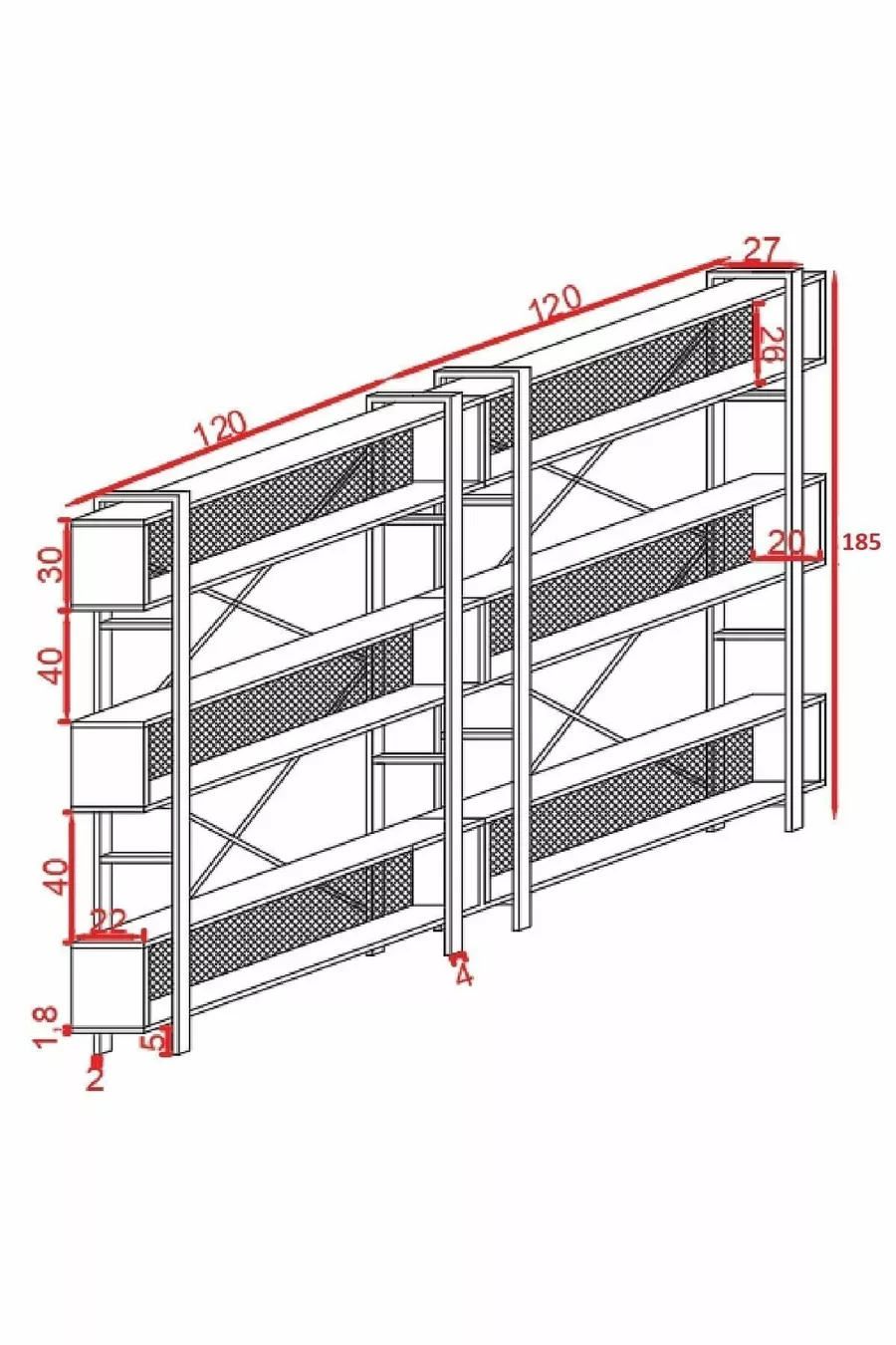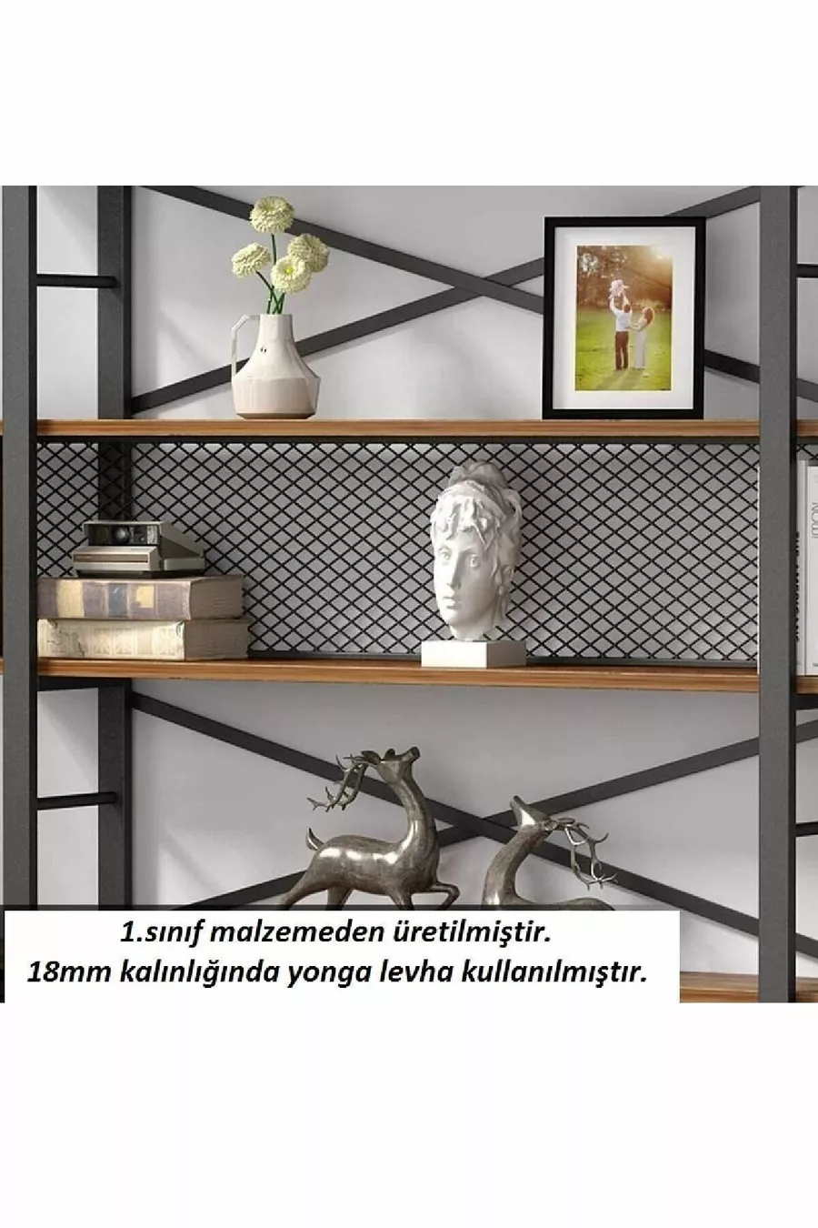 Тип: Монтиран на стена Материал: Плоскостлaмен Цвят: Кафяв Височина: 185 см Ширина: 240 см Дълбочина: 22 см Брой рафтове: 3 Материал на корпуса: Метал Стил: Ретро Тема / Стил: Модерен Произход: TR Характеристика: Монтиран на стена