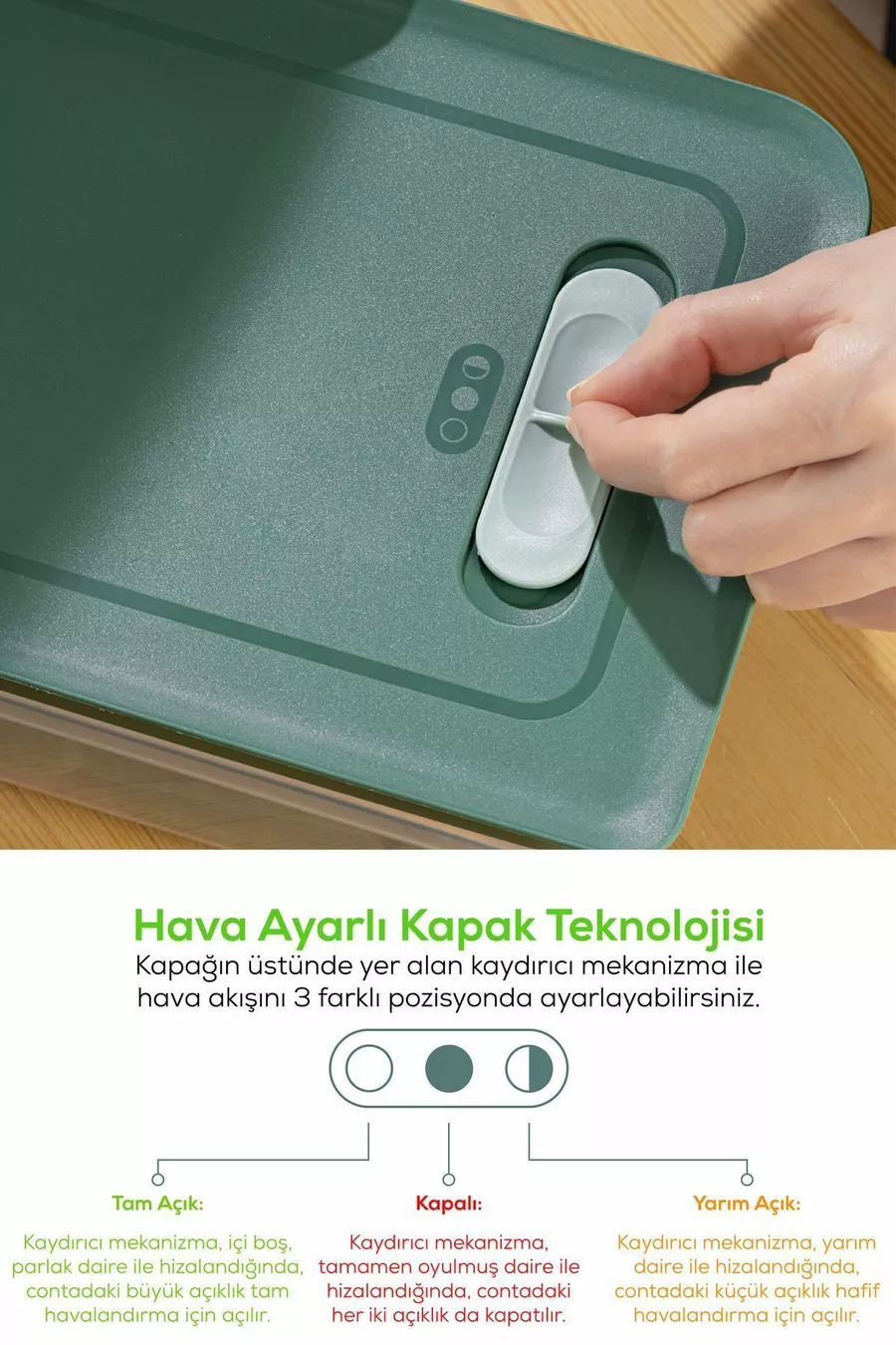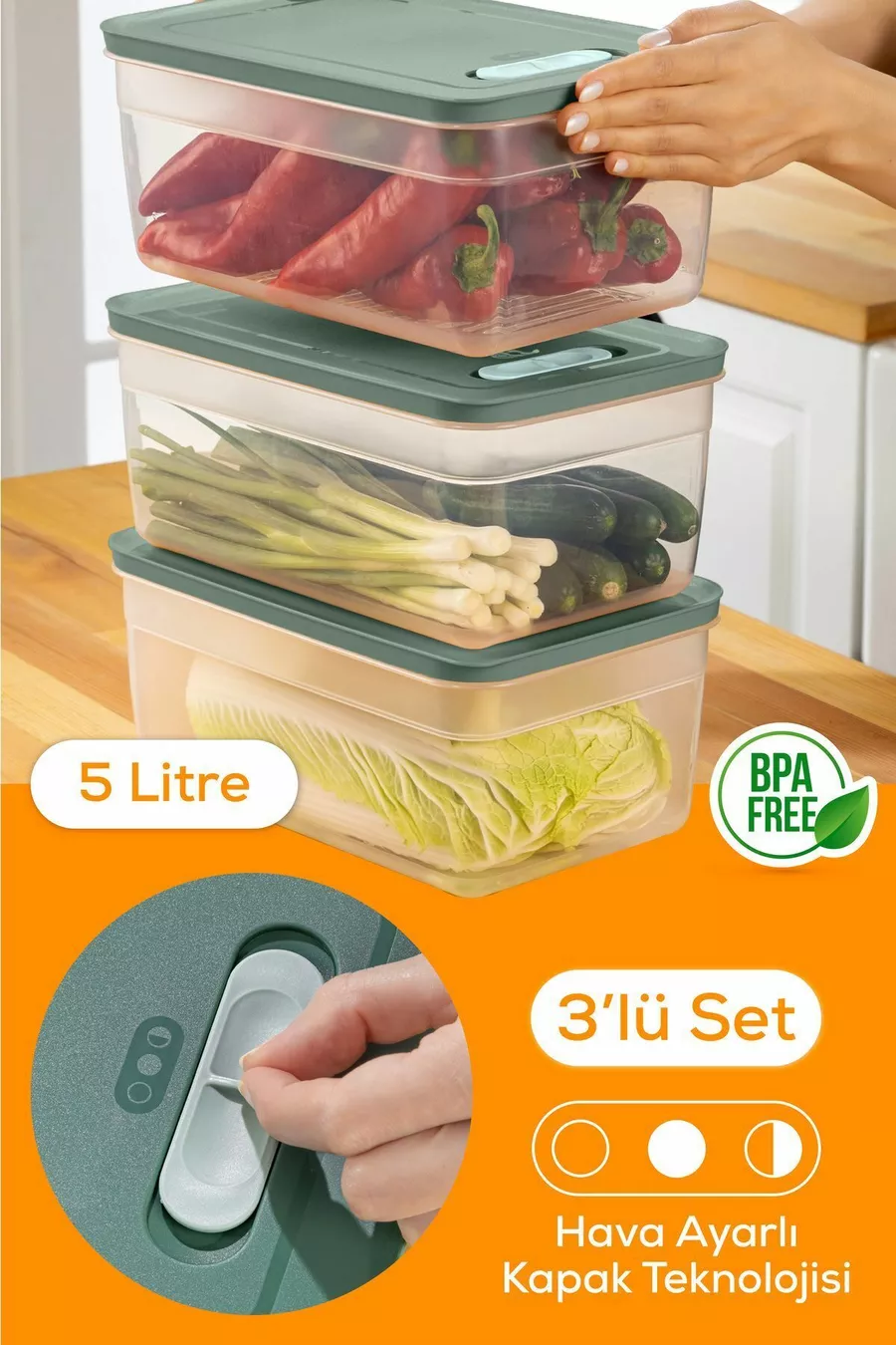 3-частен регулируем контейнер за съхранение на зеленчуци и плодове, зелен, 5 литра