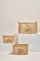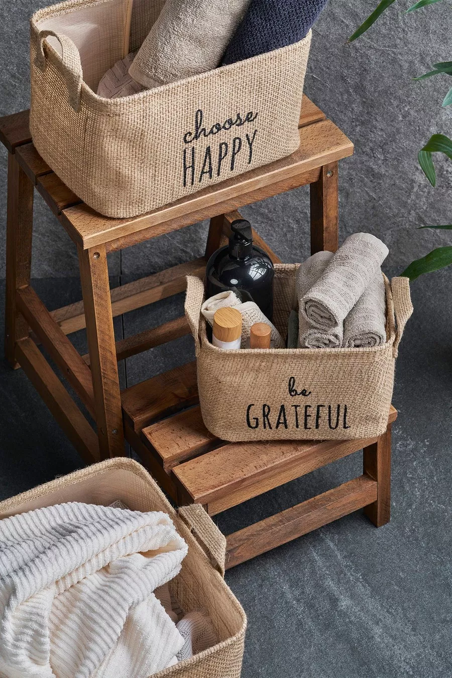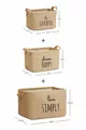 Материал: Юта Цвят: Бежов Размер/Размери: 42 x 25 Обем: 5 L Брой части: 3 Инструкции за пране: Избършете с влажна кърпа Състав на материала: 67% Юта, 18% Полипропилен, 15% EVA Производител: TR