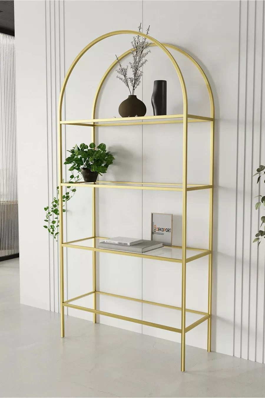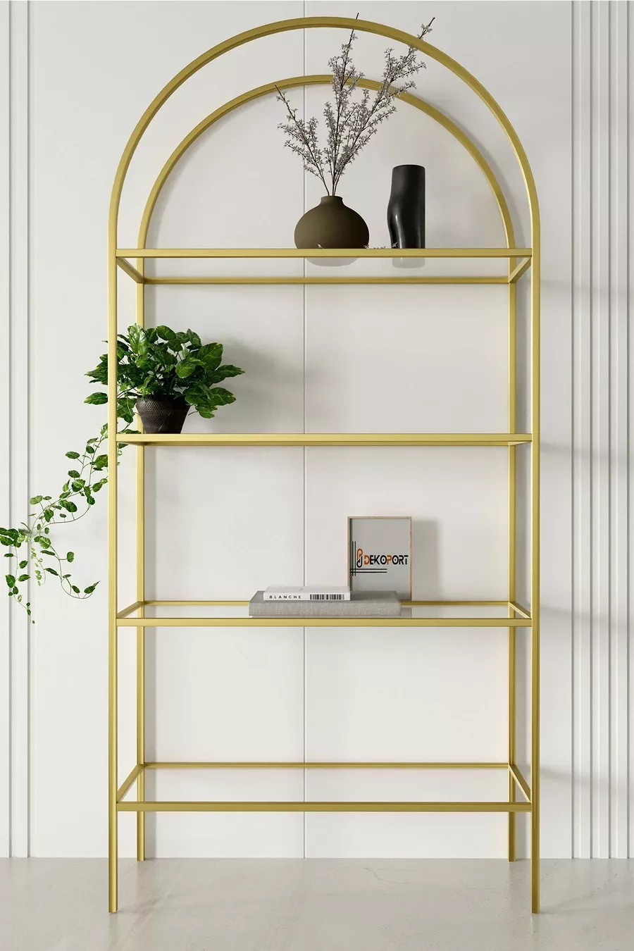 Тип: Класически Материал: Стъкло Цвят: Злато Височина: 172 см Ширина: 80 см Дълбочина: 30 см Брой рафтове: 4 Материал на корпуса: Метал Стил: Скандинавски Тема / Стил: Скандинавски Произход: TR Характеристика: С рафтове