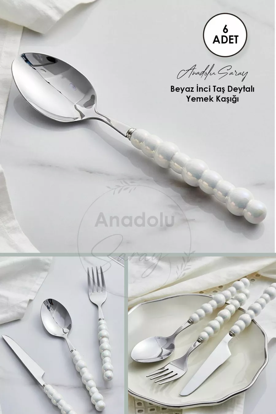 6 броя лъжици за хранене с детайл бяла перла | Комплект от 6 луксозни лъжици за хранене