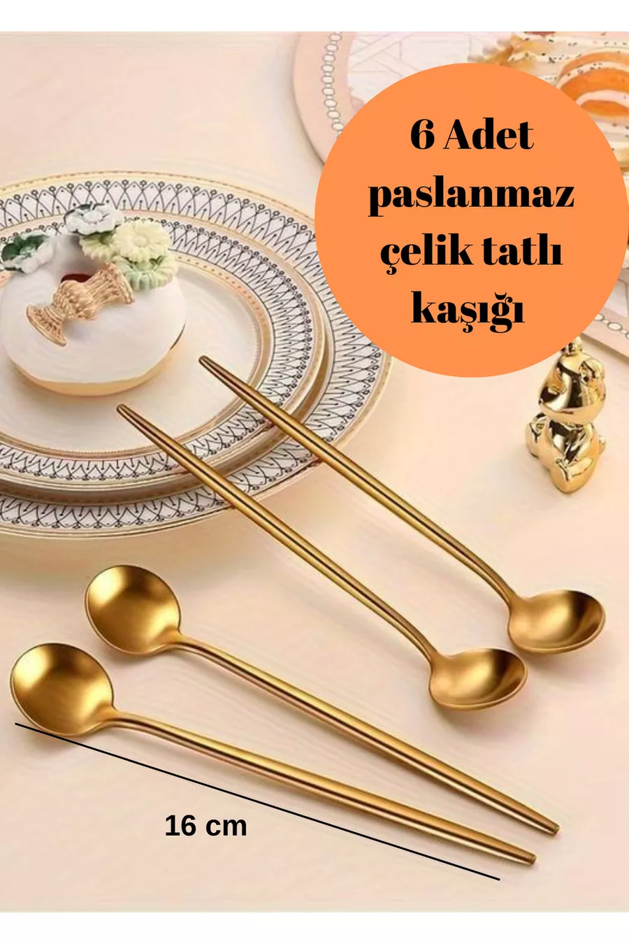 Материал: Неръждаема стомана Брой части: 6 Цвят: Златен За хора: 6 души Тип продукт: Лъжичка за десерт Гаранционен срок: 2 години