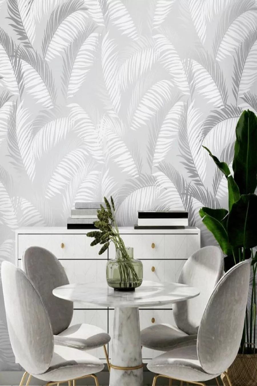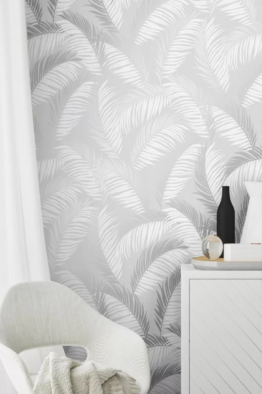 Bien Exclusive Палми Тропически Цветя Сребърно Кремаво-Сиво Тапет 5 м²