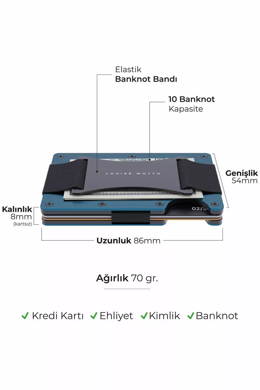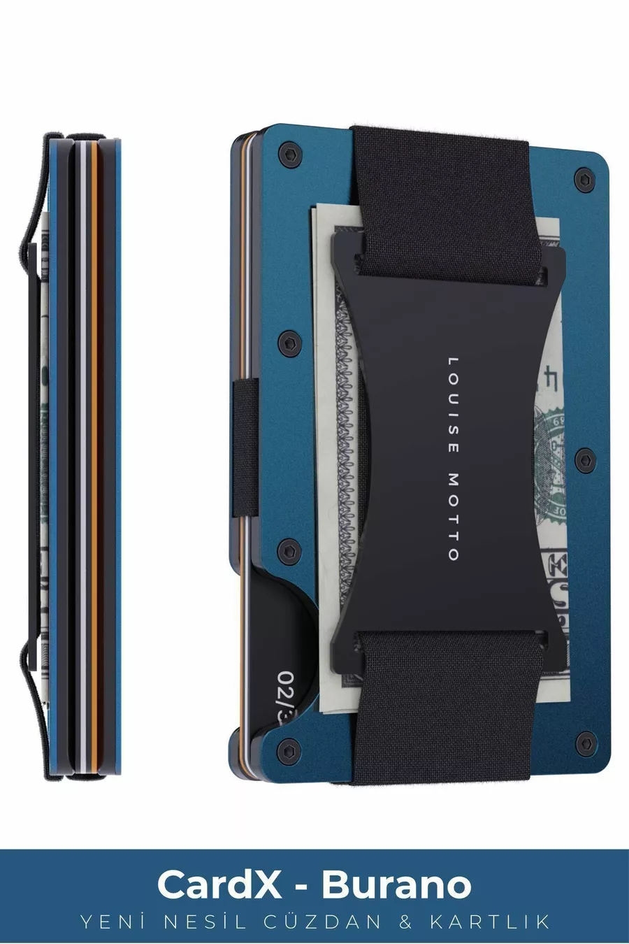 Cardx - Burano Каишка - Ново поколение минималистично портмоне и държач за карти, премиум материал, защита срещу RFID (СИНЬО)