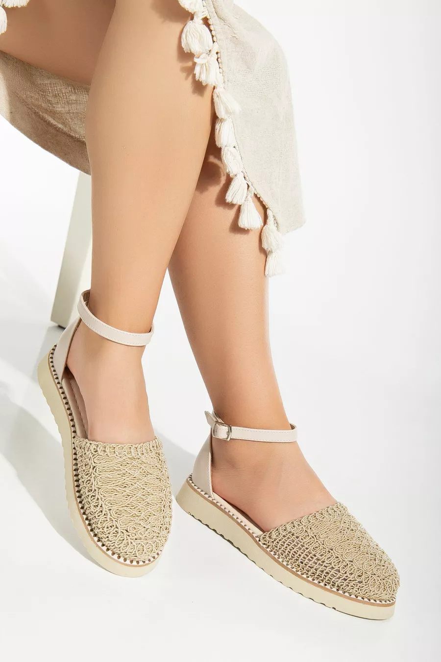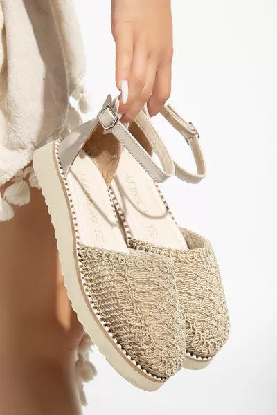 HANIMSOLLER Подплатени конци за пета Плетени бродирани дамски сандали
