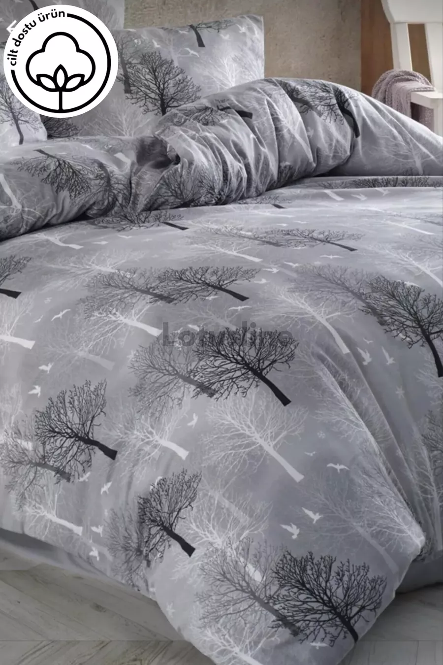 Home Gri Единичен Луксозен Спален Комплект от Памук с Дървесен Мотив - Комплект