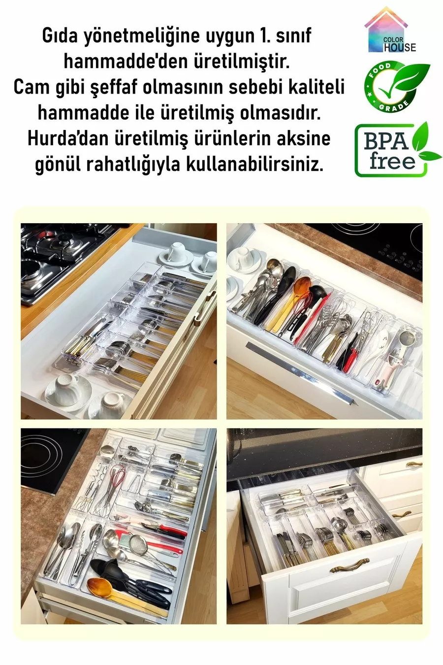 'li комплект модулна поставка за лъжици за кухня, модулен органайзер за чекмеджета, прозрачен модулен органайзер