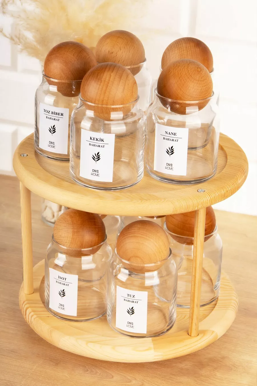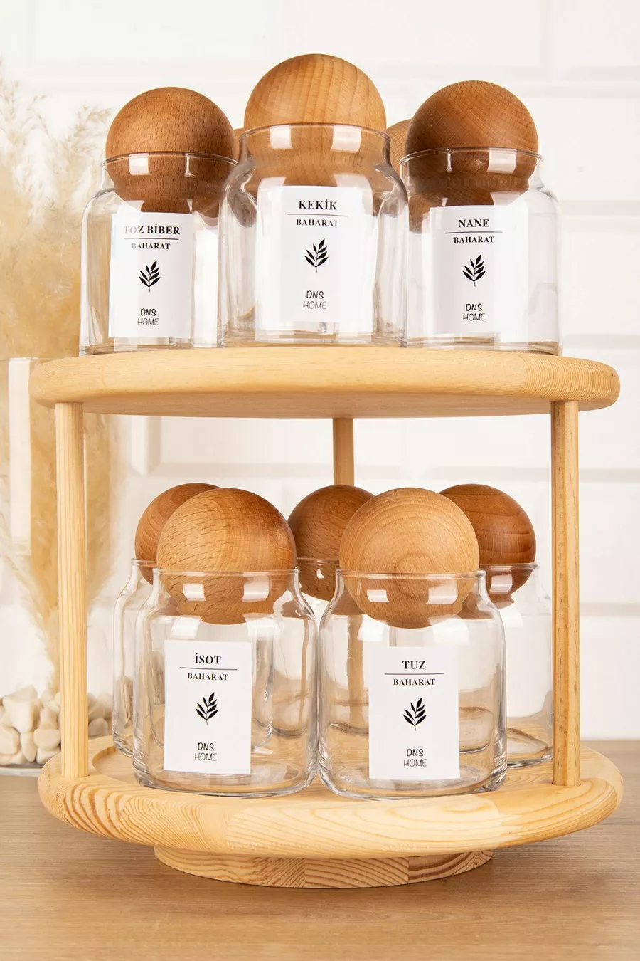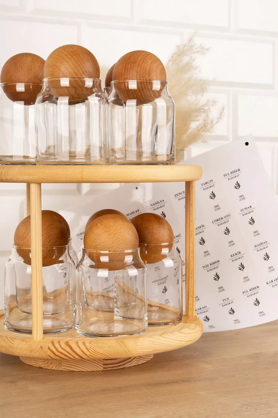 'lu Дървен Капак с Топка, Завъртаща се Поставка, Бутилки за Подправки с Етикет, Стъклен Съд за Съхранение ml