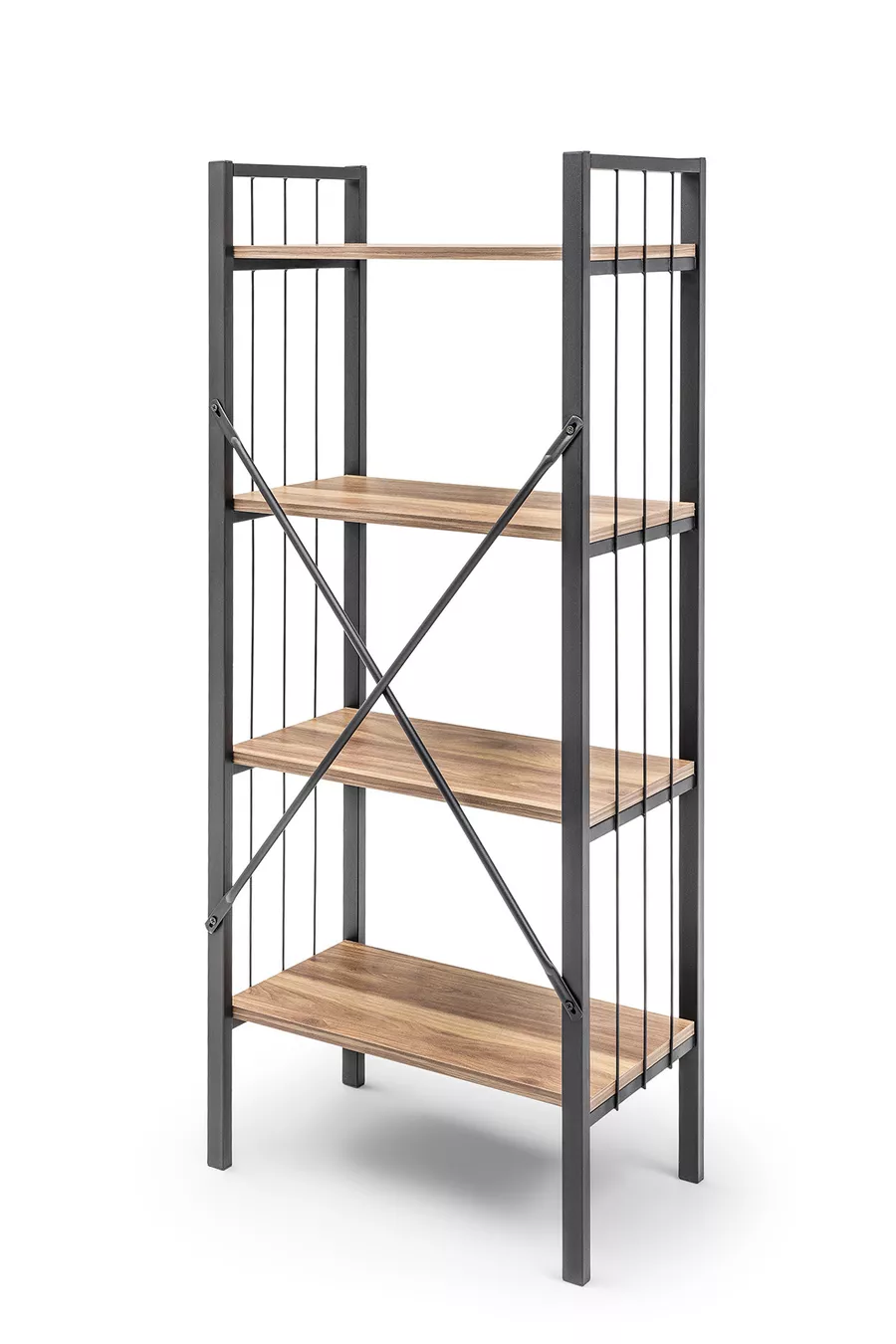 Тип: Класически Материал: Метал Цвят: Кафяв Височина: 151 см Ширина: 60 см Дълбочина: 30 см Брой рафтове: 4 Материал на корпуса: Метал Стил: Модерен Тема / Стил: Модерен Произход: TR Характеристика: С рафтове