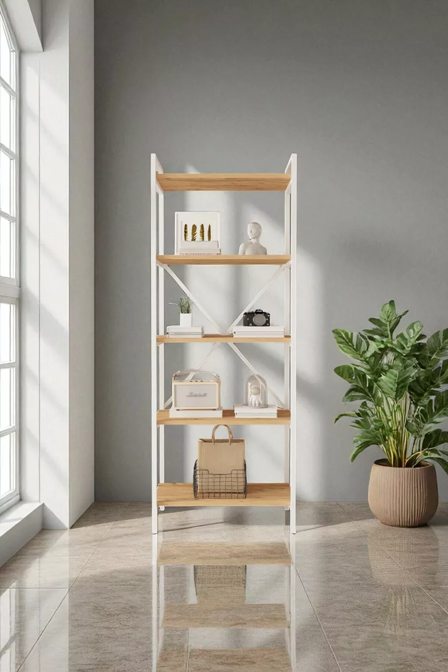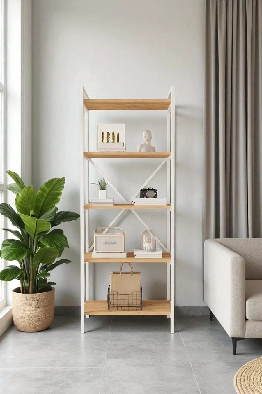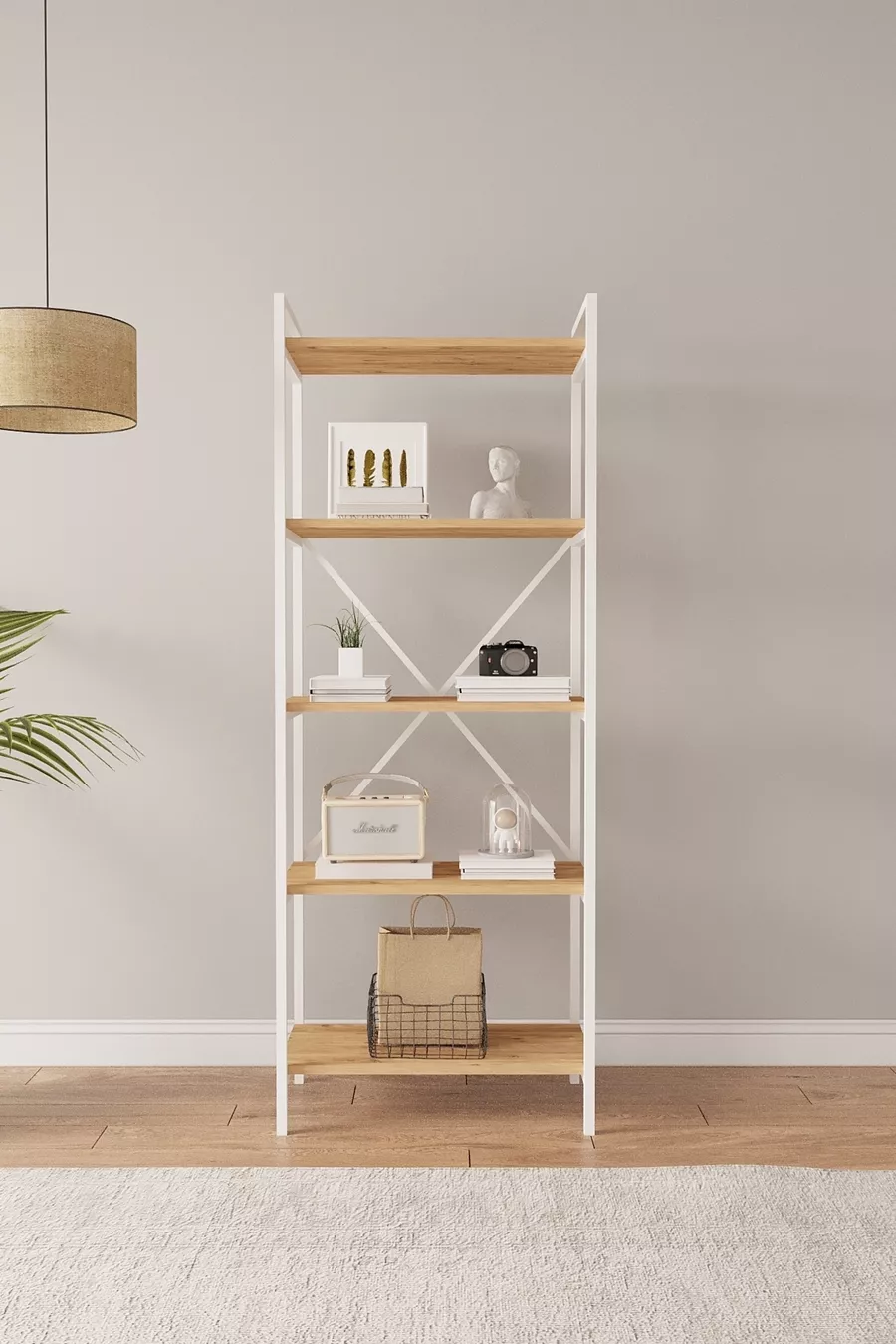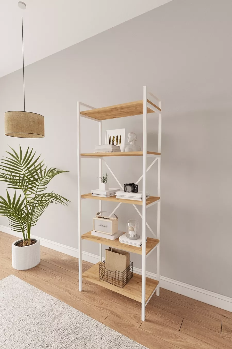 Тип: Класически Материал: Плоскостлaмен Цвят: Кафяв Височина: 170 см Ширина: 65 см Дълбочина: 34 см Брой рафтове: 5 Материал на корпуса: Метал Стил: Скандинавски Тема/Стил: Скандинавски Произход: TR Характеристика: Дълъг