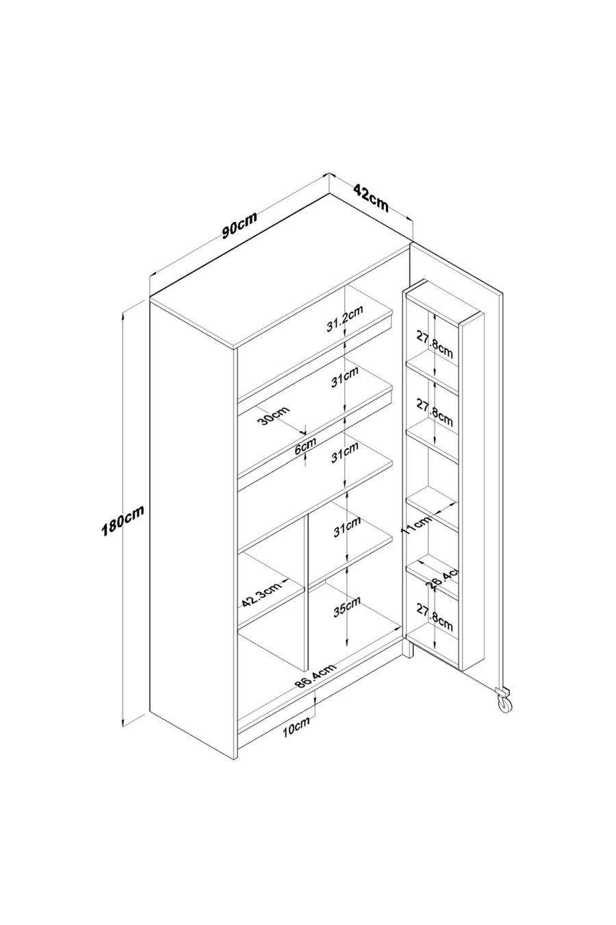 Материал: Сунталам Цвят: Бял Височина: 180 см Ширина: 90 см Дълбочина: 42 см Гаранционен срок: 2 години Стил: Модерен