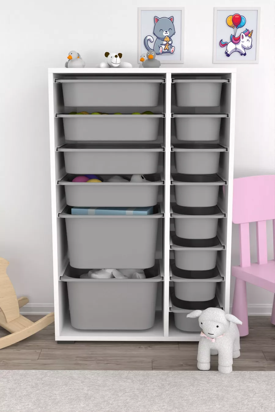 Материал: Сунталам Брой чекмеджета: 14 Ширина: 69 см Дълбочина: 30 см Височина: 109 см Цвят: Сив Тема / Стил: Модерен Произход: Турция Възраст: 4 - 8 години