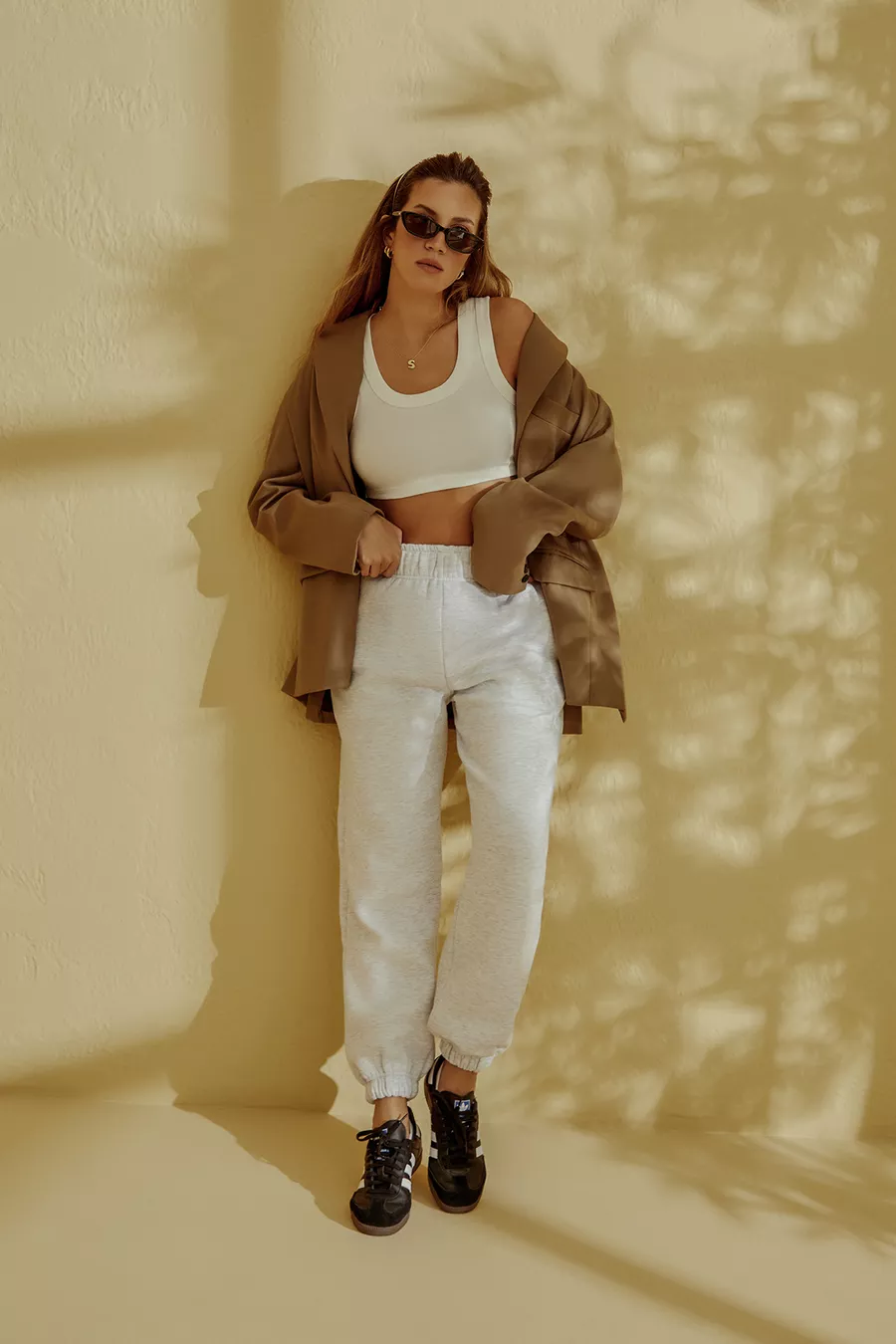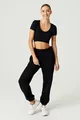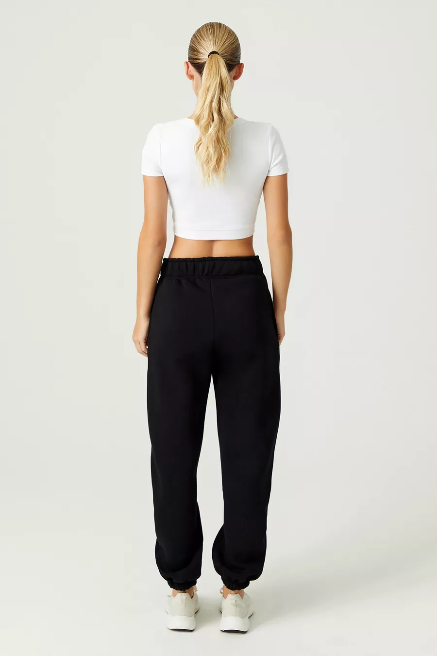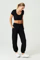 x Melodi Черен Oversize/широк Модел Памучен Плътен Спортен Панталон Двуфункционален