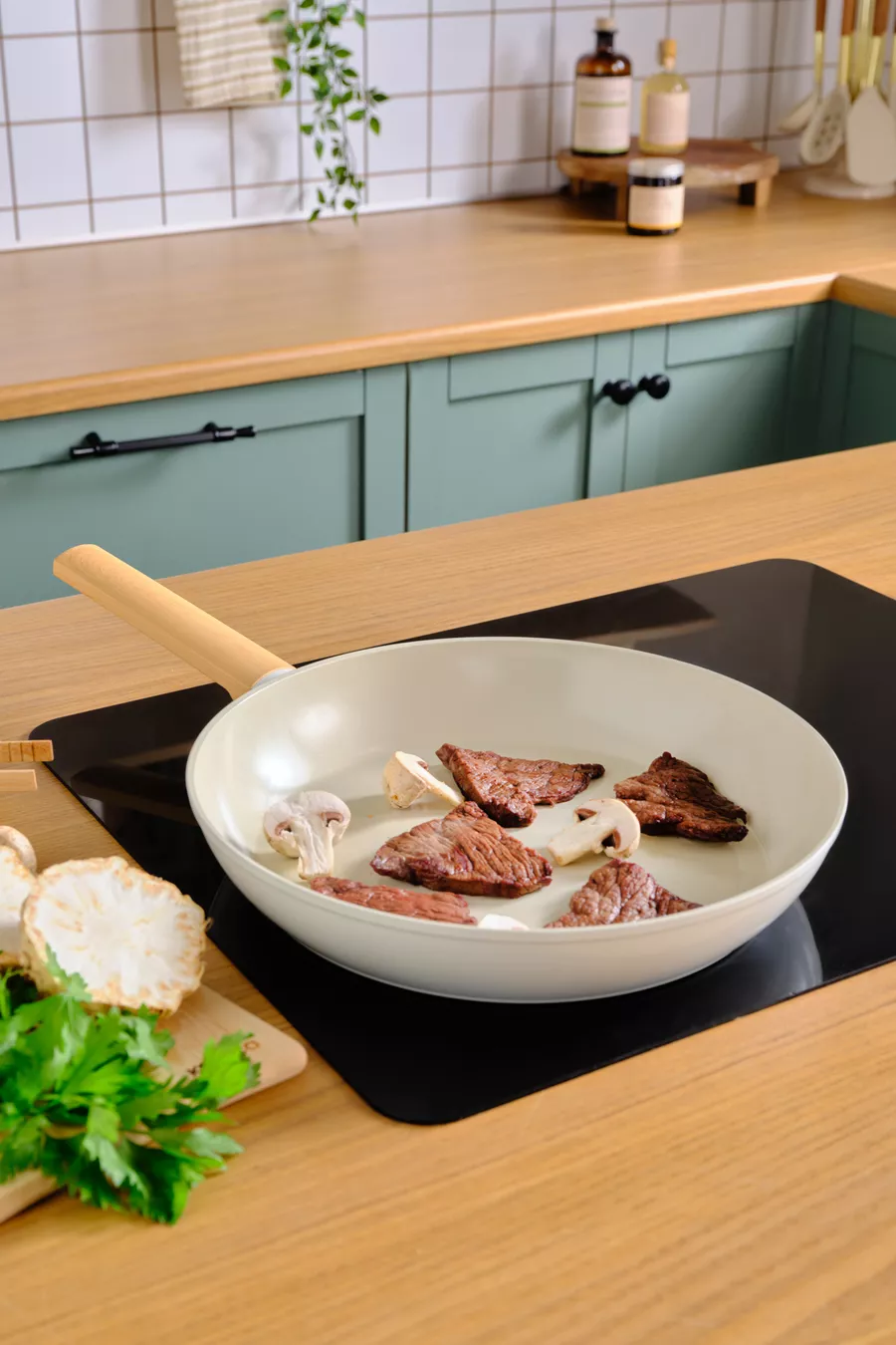 Размер/Габарит: 26 см Брой части: 1 Характеристика: Подходящ за използване на индукционен котлон Тип продукт: Тиган за пържене Външен материал: Керамика Вътрешен материал: Керамика Произход: CN Материал: тест Цвят: Крем
