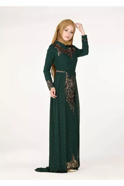 Grünes Hijab-Abendkleid mit Stein auf der Vorderseite