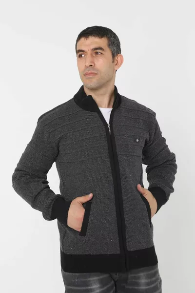 Anthrazitfarbene Herren-Strickjacke mit Kapuze und Reißverschluss