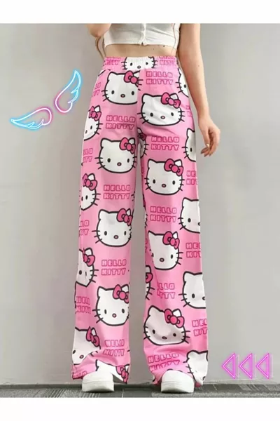 Pink Hello Kitty Cat Jogginghose mit lockerem Bein