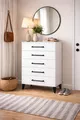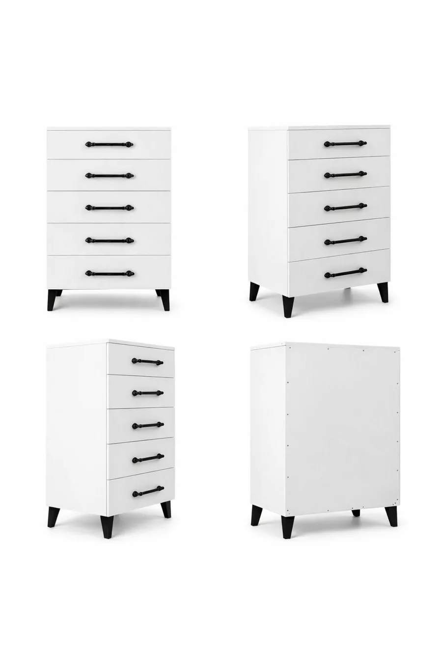 Farbe: Weiß Material: MDF Höhe: 105 cm Breite: 55 cm Tiefe: 45 cm Anzahl der Schubladen: 5 Produkteigenschaft: Mit Schubladen Stil: Modern Thema / Stil: Modern Herkunft: TR