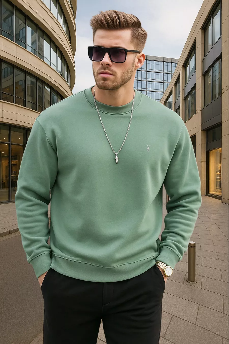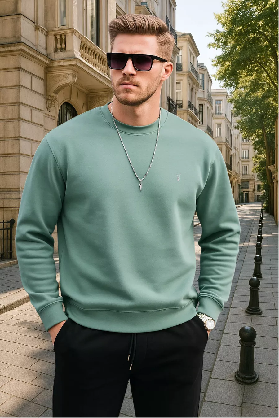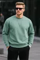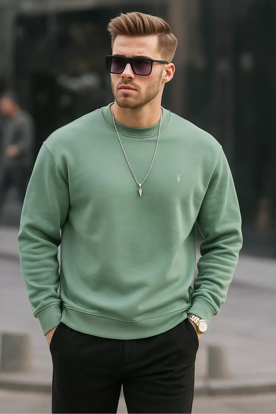 Çağla-Farbe Basic Rundhals Entspannte Normale Herren Sweatshirt