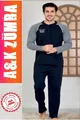 Ökonomischer Herrenpyjama aus Baumwoll-Strick für den Winter, Dunkelblau