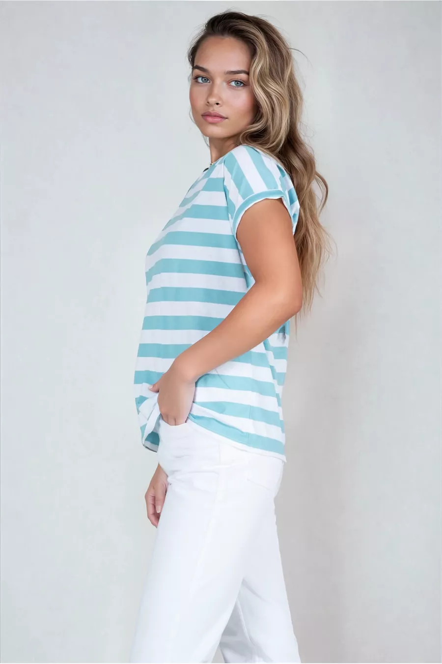 Muster: Gestreift Schnitt: Locker Kragenart: Rundhalsausschnitt Material: Baumwolle Stoffart: Gewebt Ärmellänge: Kurzarm Farbe: Blau Packungsinhalt: Einzelstück Technik: Keine Tasche: Ohne Tasche Produktdetails: Mit Bund Ärmellänge: Kurz Kollektion: Basic Länge: Regulär Anlass: Alltag Zusatzmerkmal: Kein Zusatzmerkmal Druck-/Sticktechnik: Ohne Druck Nachhaltigkeitsdetails: Nein Webart: Suprem Silhouette: Locker Persona: Cool & Comfort Materialzusammensetzung: 100% Baumwolle Waschanleitung: Maschinenwäsche 40 Grad Saison: Sommer Herkunft: TR Verpackungszustand: Keine Box