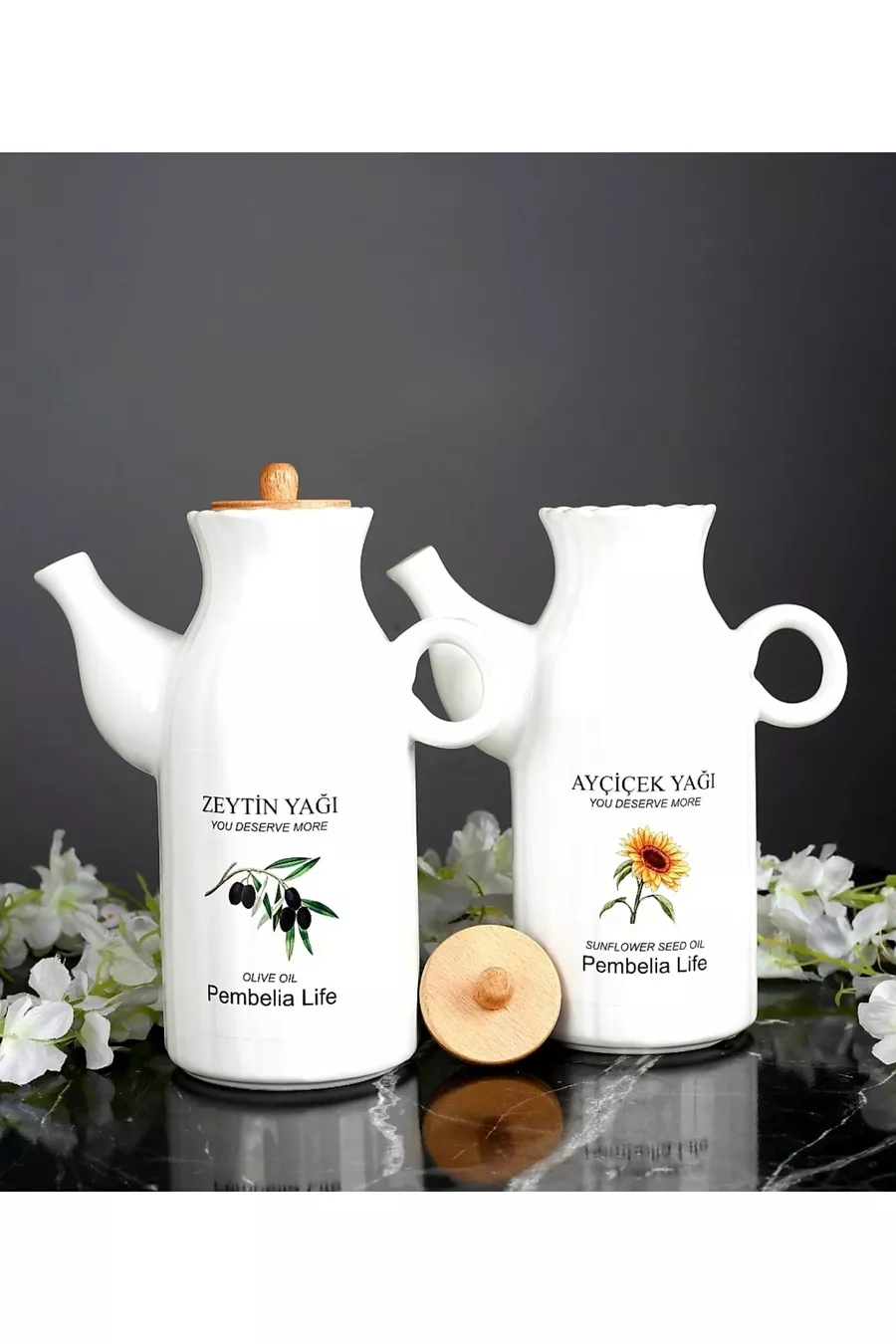 2 Stück Porzellan Öl- & Essigspender ml mit Etikett (2-teiliges Ölset)