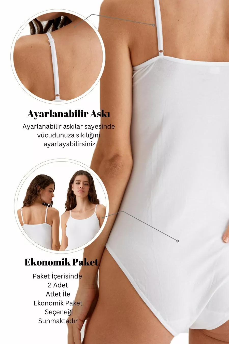 2-teiliges Wirtschaftspaket Weiß Dünn Träger Basic Baumwoll-Body / Unterhemd Set