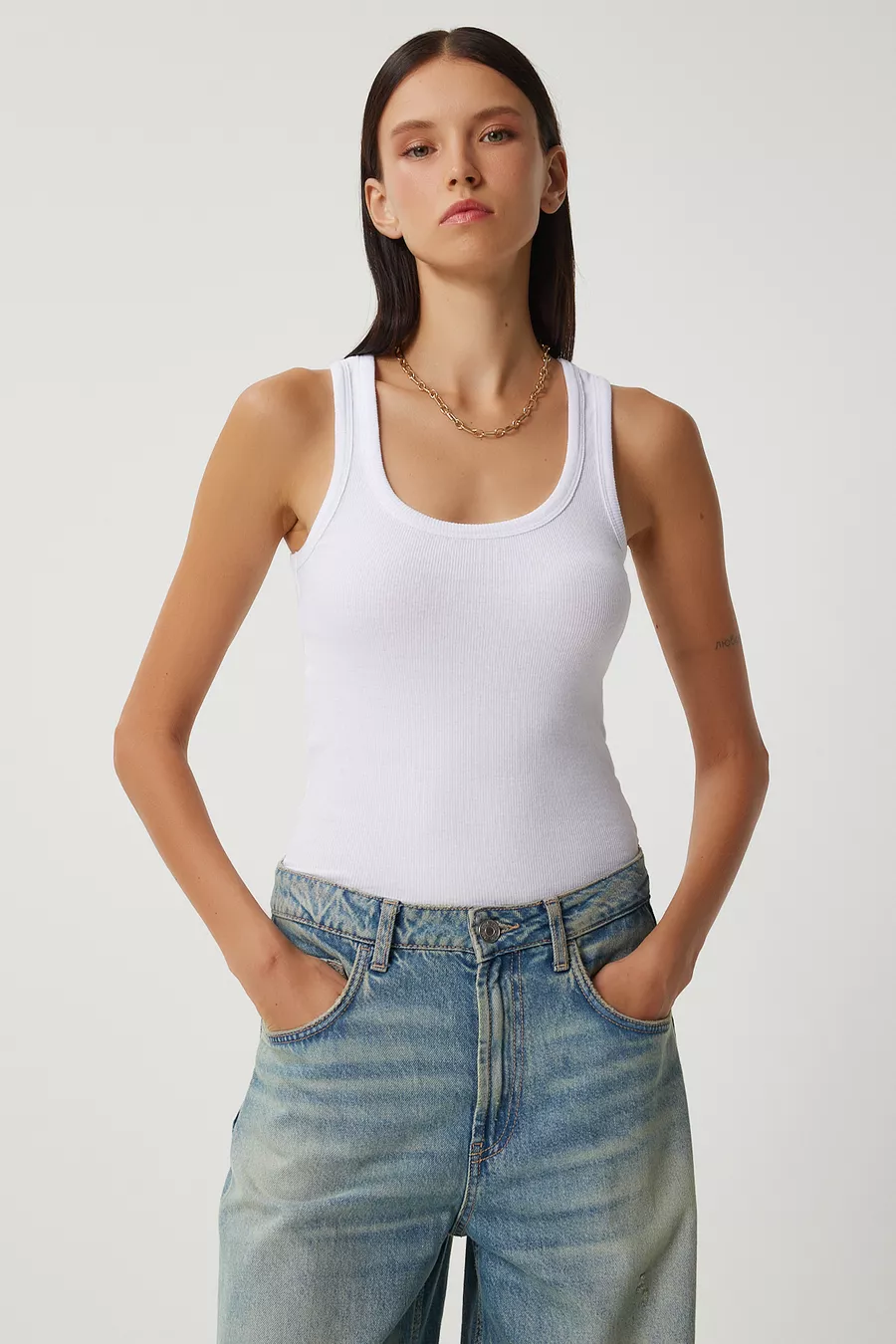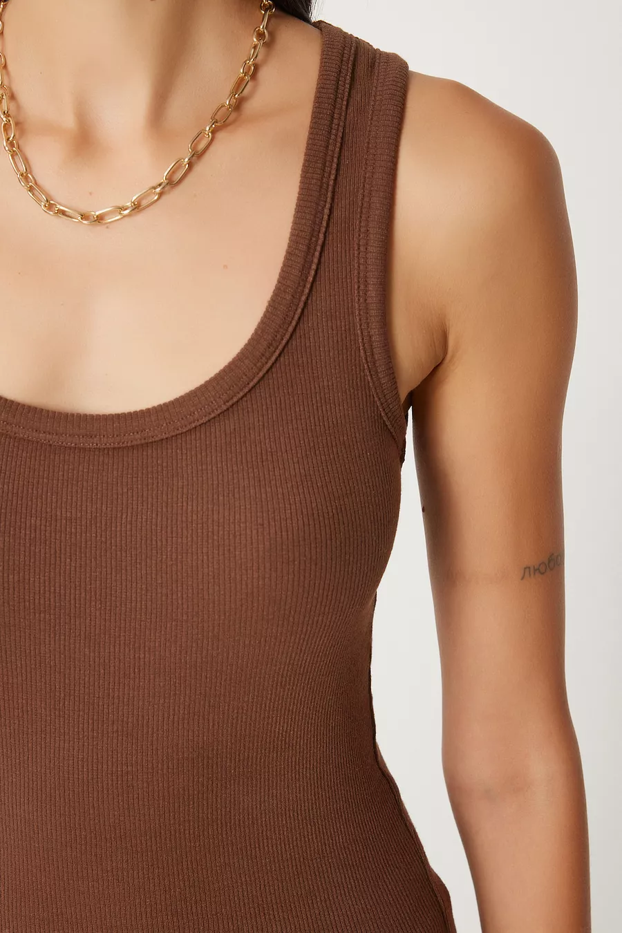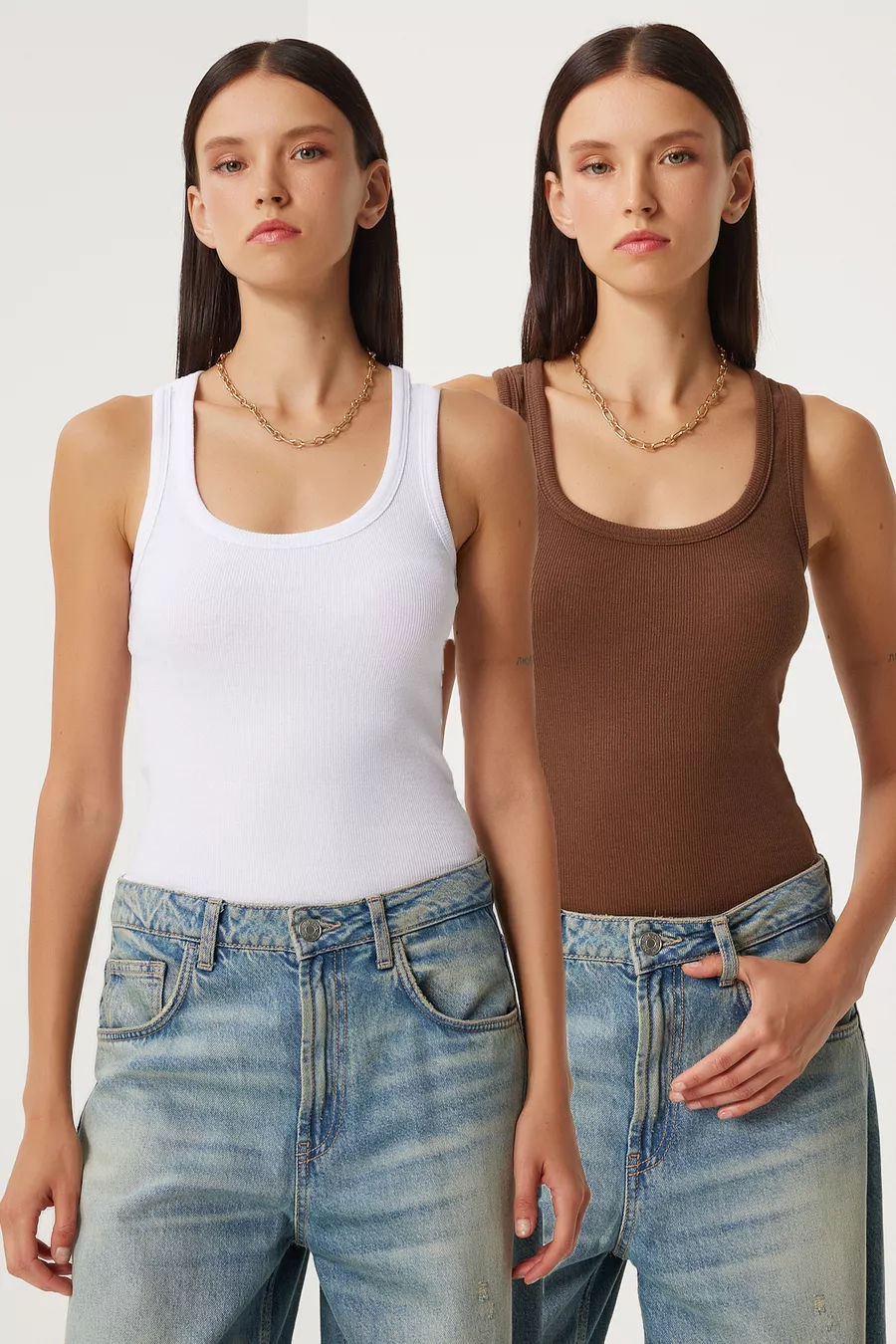 2er-Set Gerippte Strick-Tanktops mit breiten Trägern BRAUN WEISS