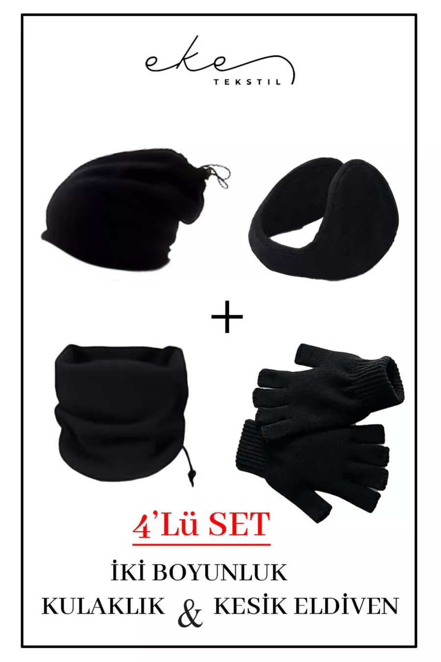 4-teiliges Set, winddichte 2er-Pack Polar-Schal, Ohrenschützer und gestrickte Fingerhandschuhe