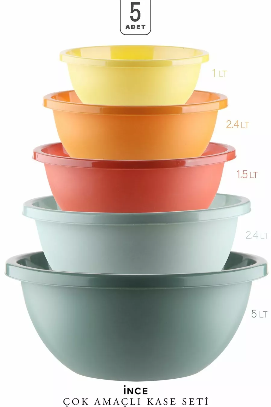 Anzahl der Teile: 5 Volumen: 500 - 1000 ml Produkttyp: Salatschüssel Farbe: Gelb Herkunft: TR Material: Kunststoff