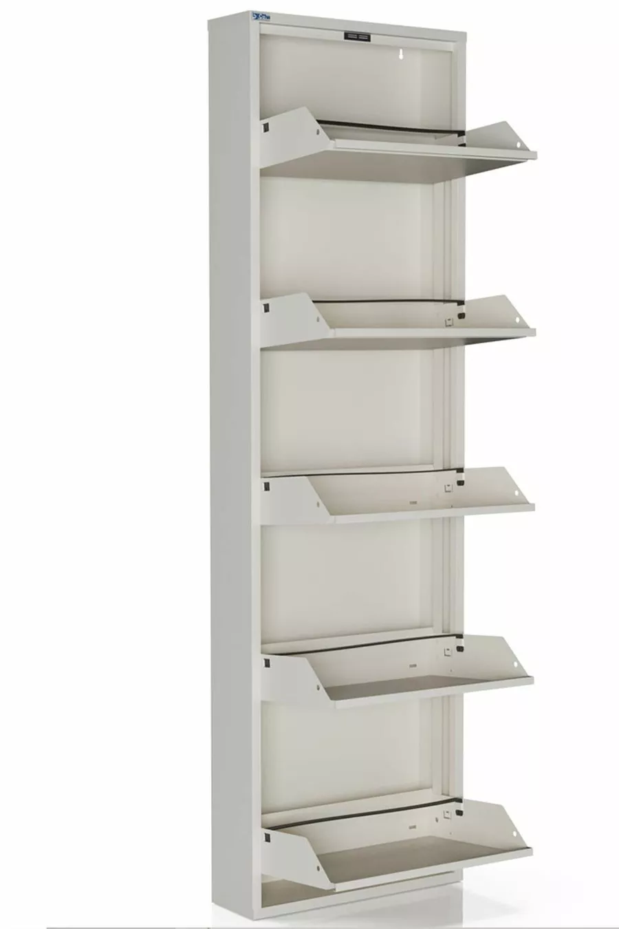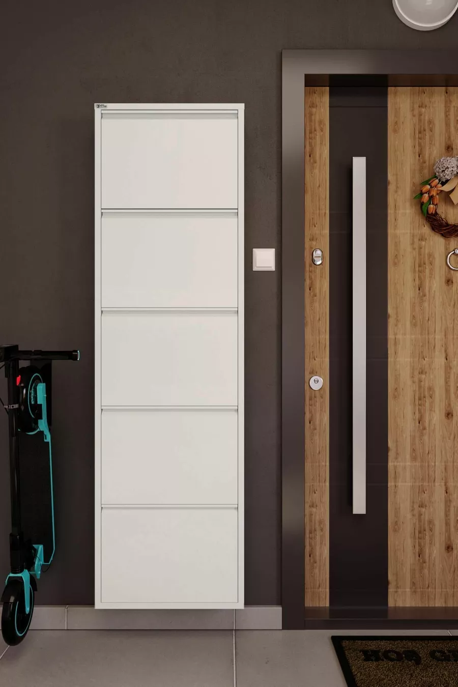 Material: Metall Farbe: Weiß Anzahl der Türen: 5 Höhe: 169 cm Breite: 50 cm Tiefe: 15 cm Garantiezeit: 2 Jahre Stil: Modern Thema / Stil: Modern Merkmal: Lang