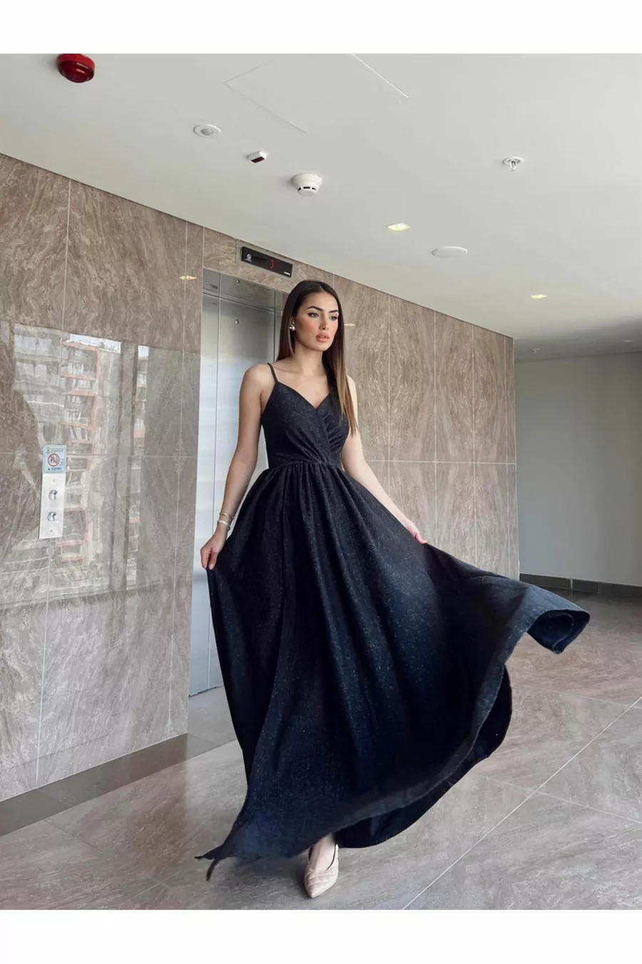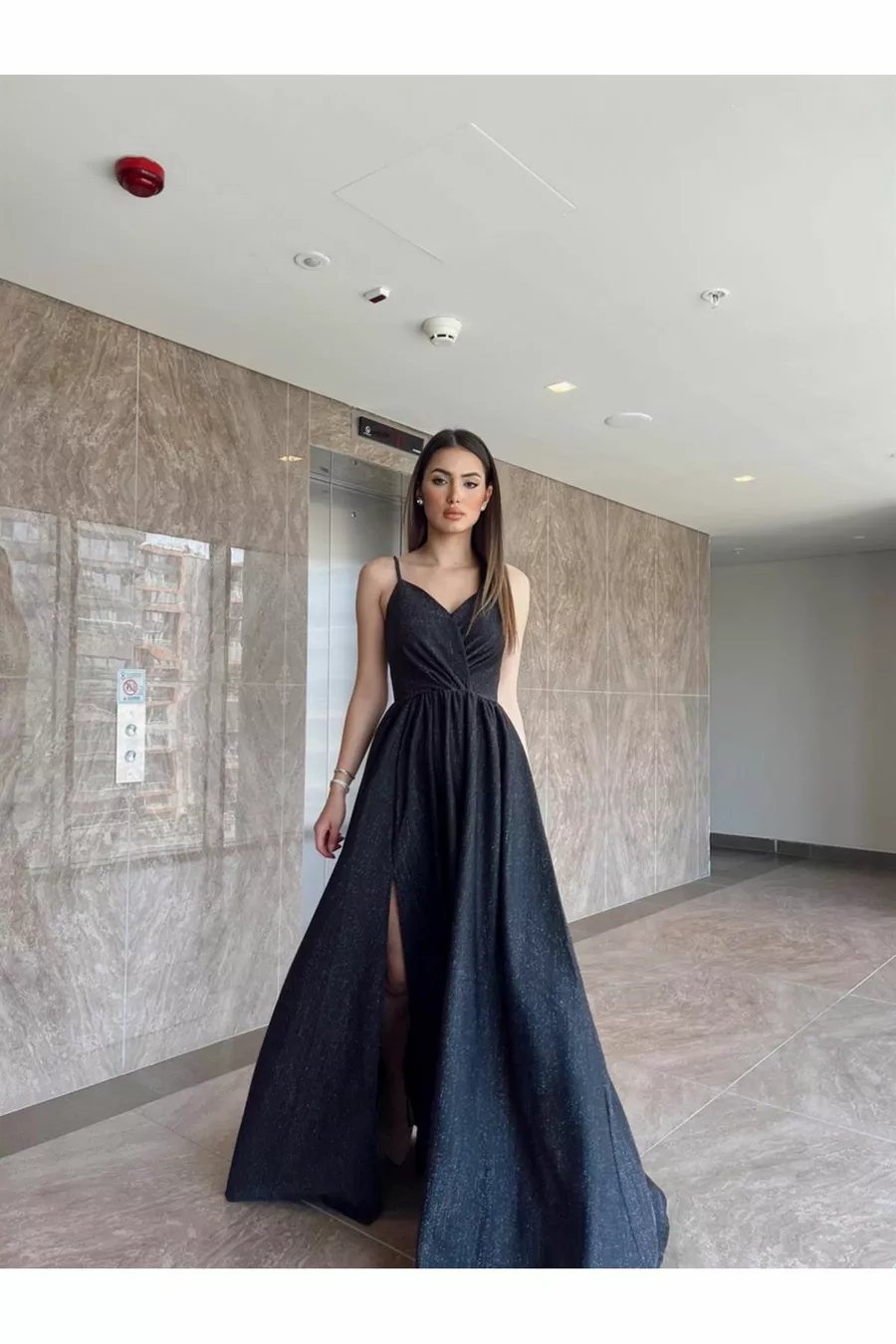 Abendkleid mit Glitzerschlitz SCHWARZ