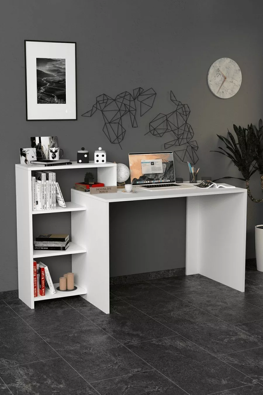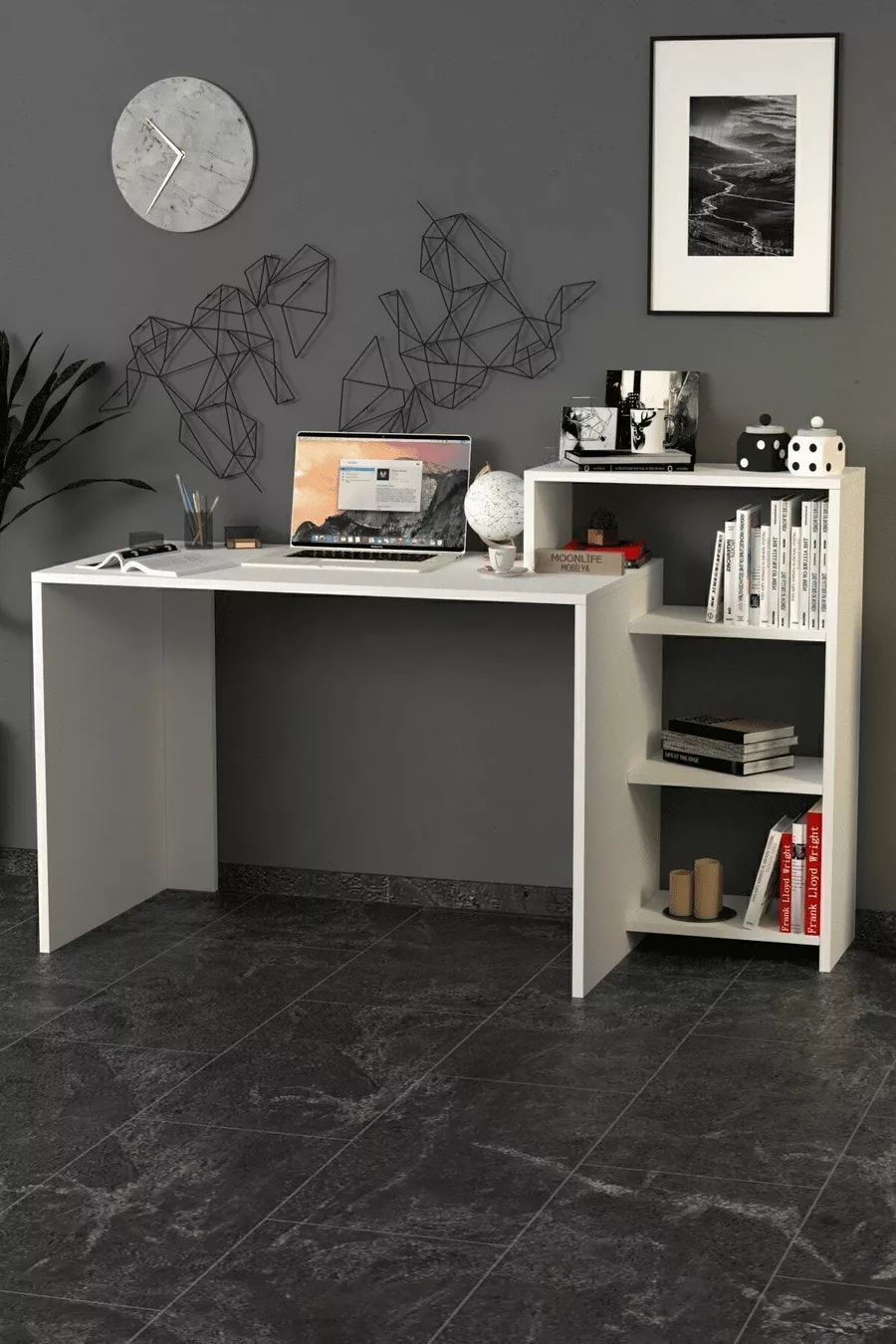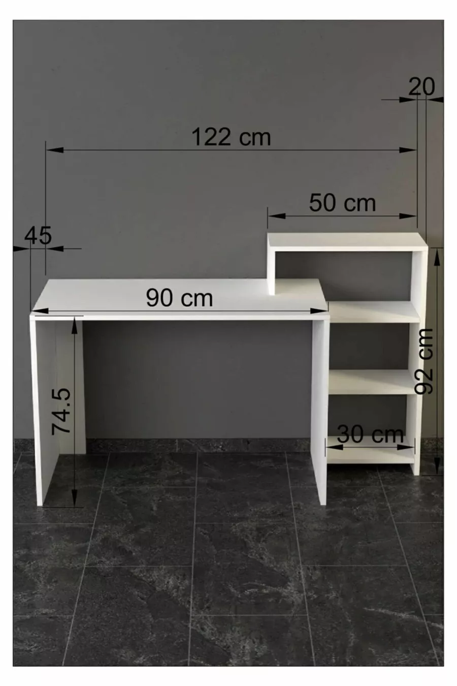 Material: Spanplatte Farbe: Weiß Höhe: 92 cm Breite: 122 cm Tiefe: 45 cm Stil: Skandinavisch Thema / Stil: Skandinavisch Eigenschaft: Mit Bücherregal