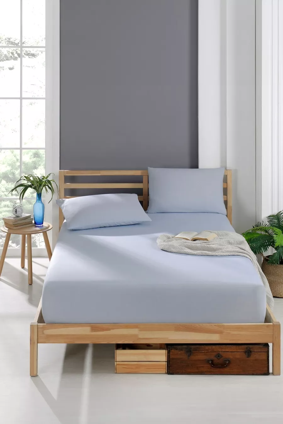 Material: Baumwolle Packungsinhalt: 3-teilig Bettlakenart: Mit Gummizug Farbe: Blau Größe: 160 x 200 Muster: Uni Eigenschaft: Farbecht Materialzusammensetzung: 70% Baumwolle, 30% Polyester Waschanleitung: Maschinenwäsche bei 30 Grad empfohlen Herkunft: TR