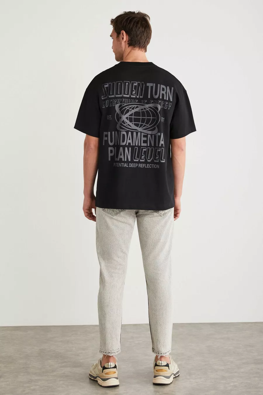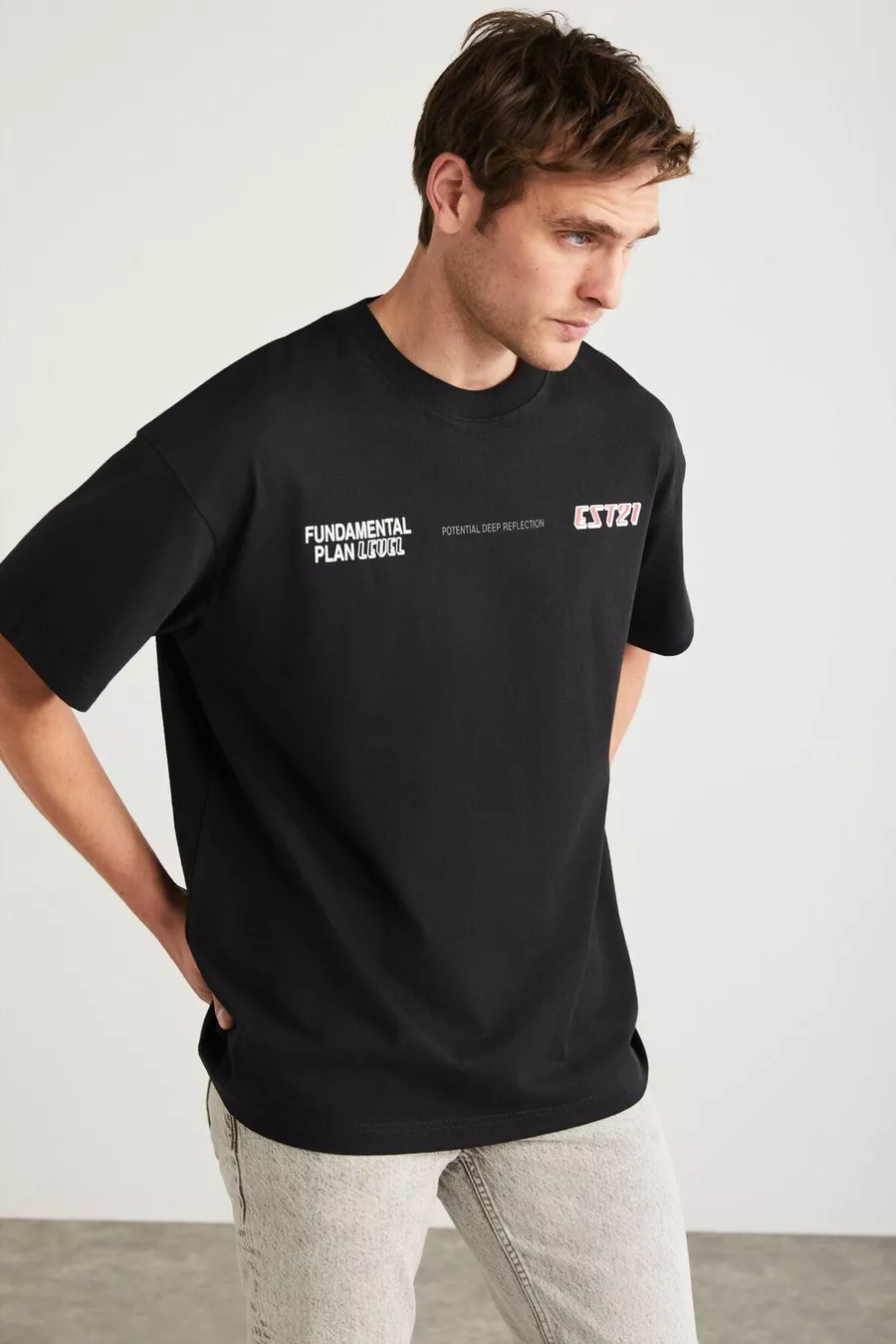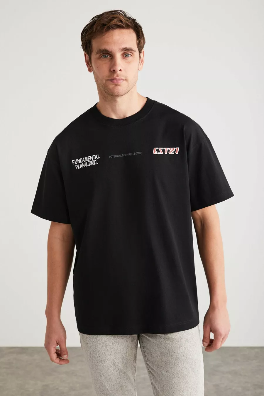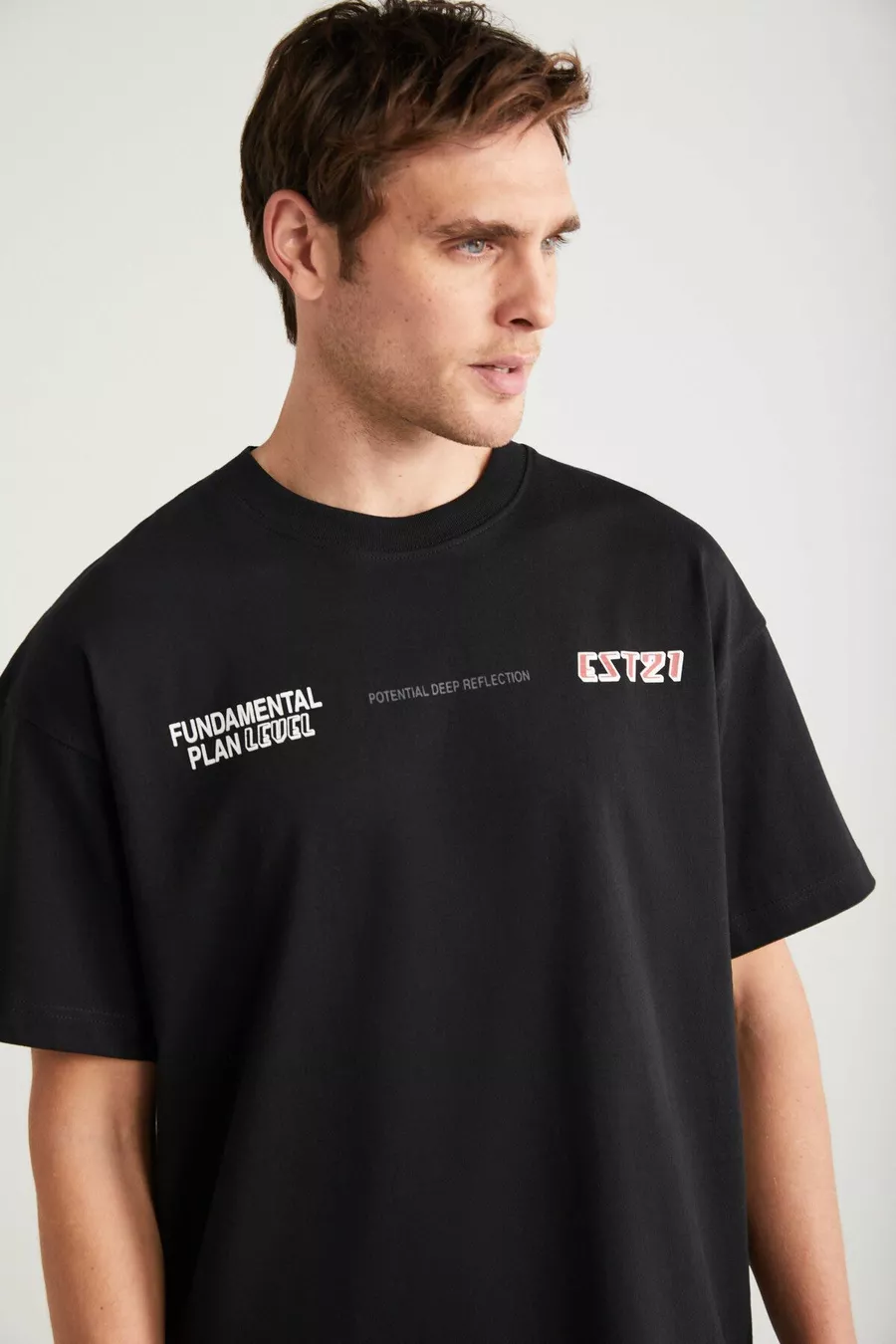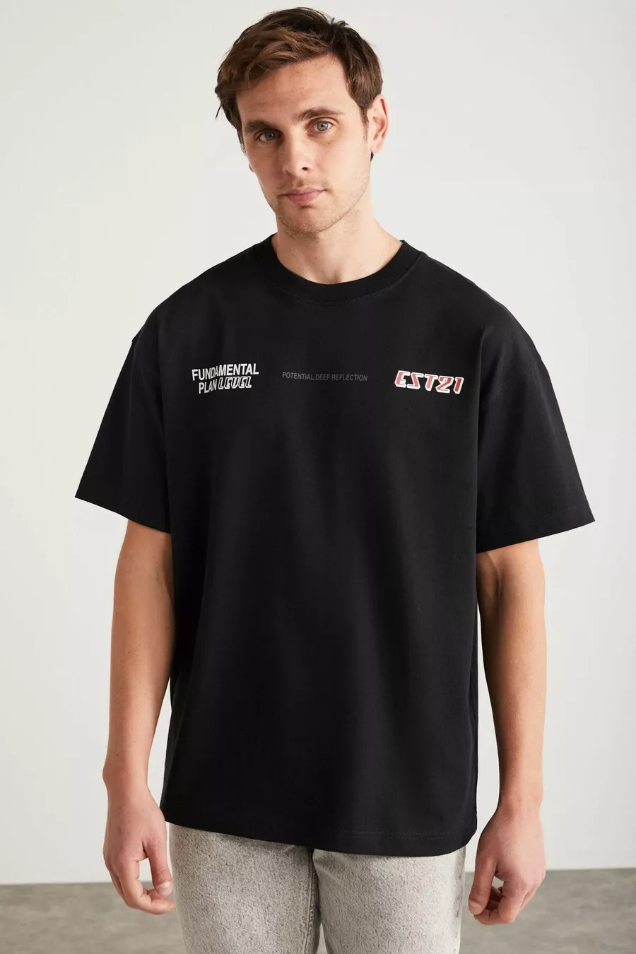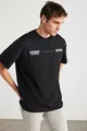 Apolo Herren T-Shirt mit Rückenprint, Oversize-Passform, kurzarm, aus % Bio-Baumwollstrick, schwarz