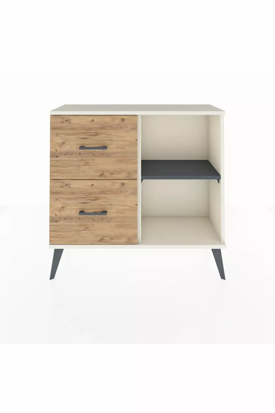 Arges Kommode mit Einem Regal und Zwei Schubladen Mondsichel-Anthrazit/Kiefer