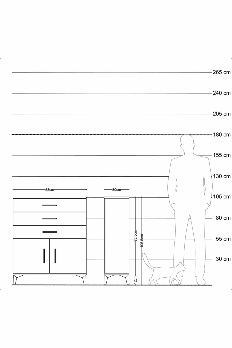 Farbe: Mehrfarbig Material: Spanplatte Höhe: 106 cm Breite: 88 cm Tiefe: 30 cm Anzahl der Schubladen: 3 Produkteigenschaft: Mit Schublade Stil: Modern Thema / Stil: Modern Herkunft: TR