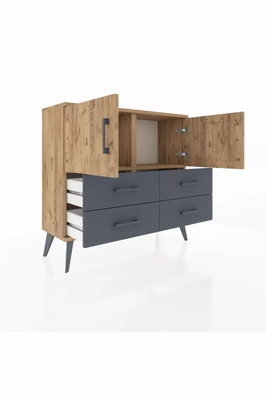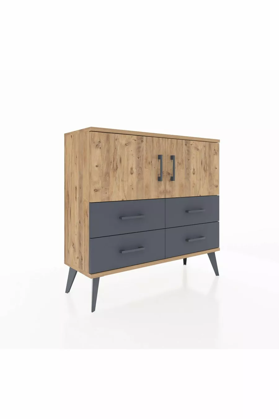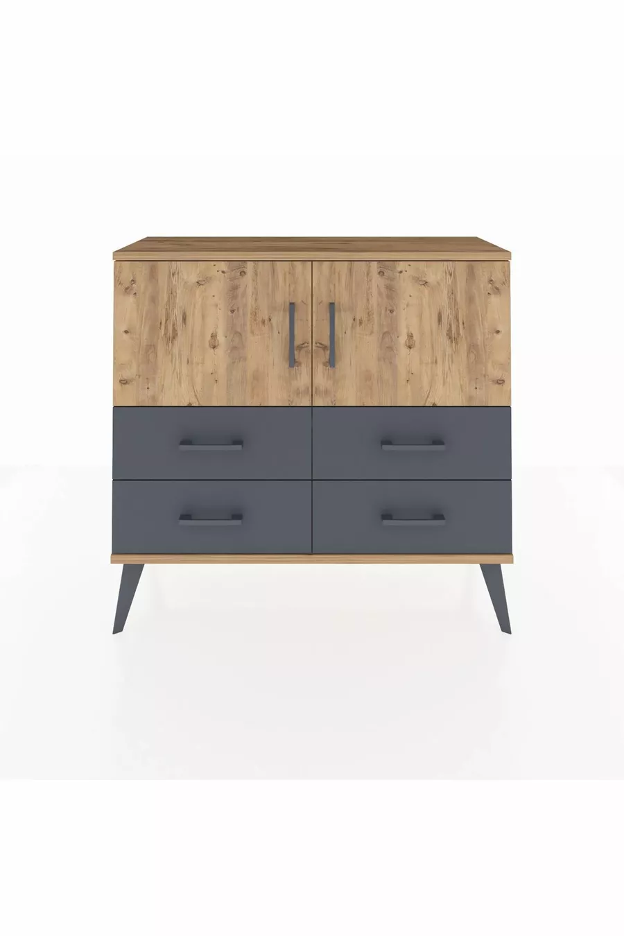 Arges Kommode mit 2 Regalböden, 4 Schubladen und 2 Türen, Kiefer-Kiefer/Anthrazit
