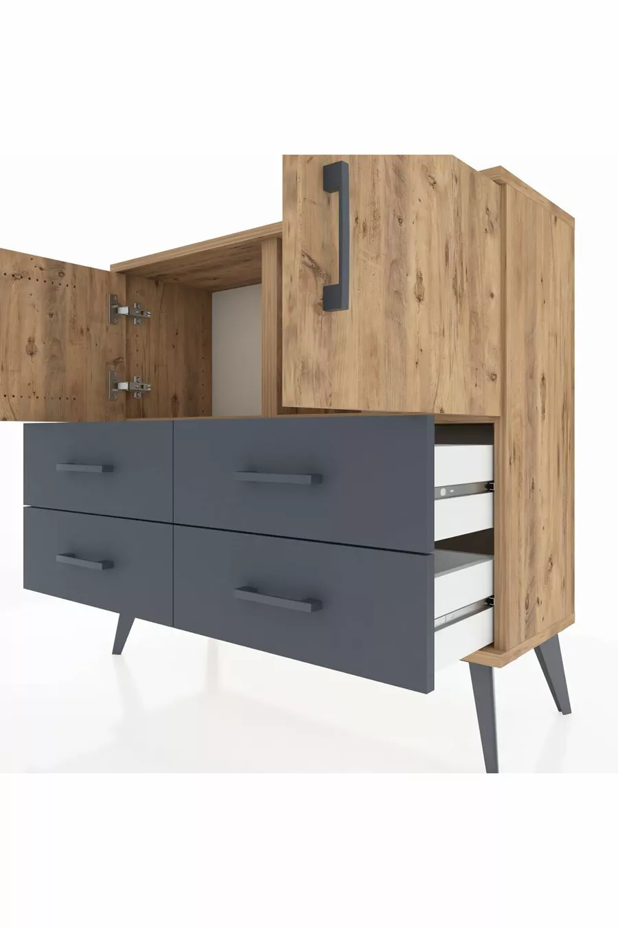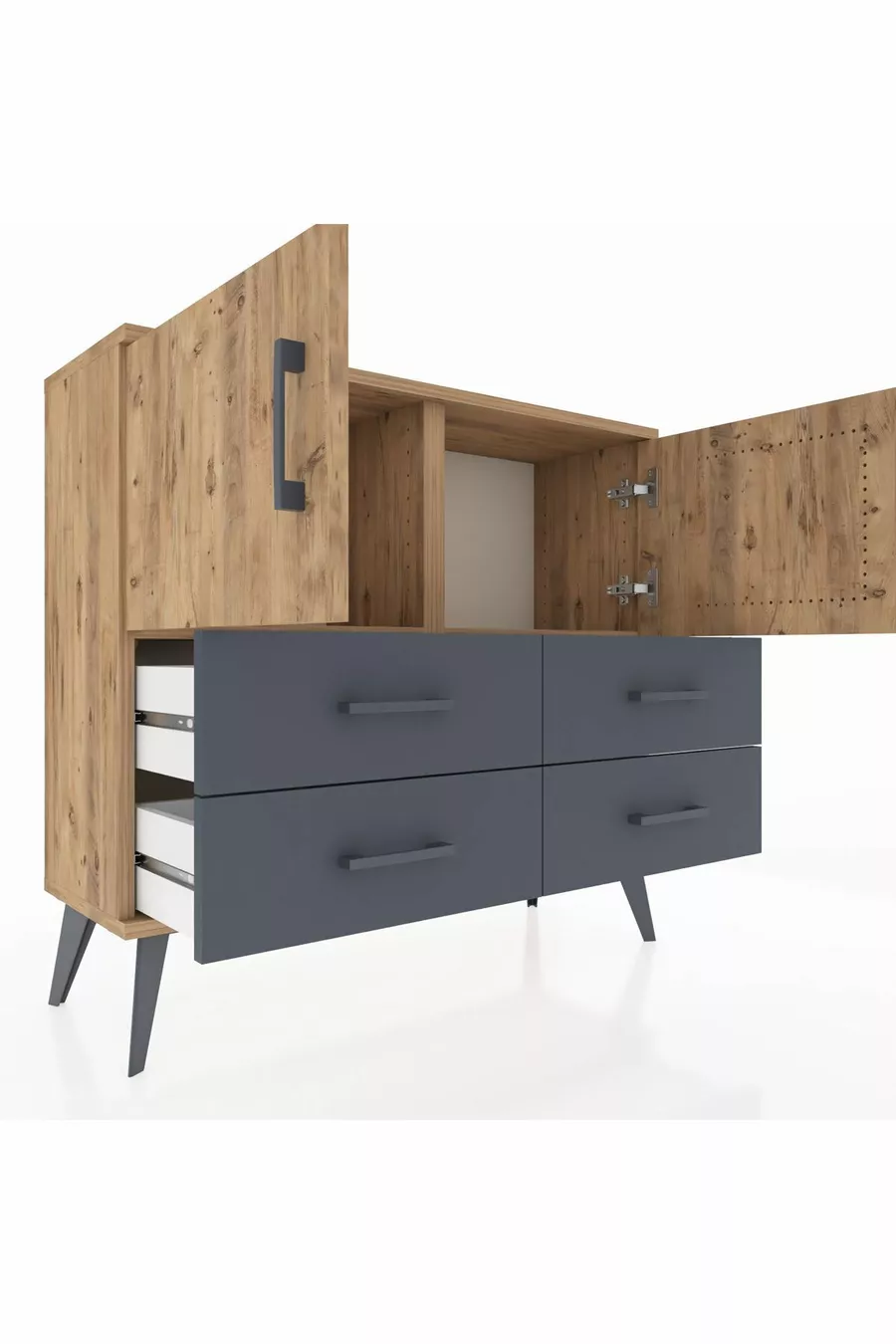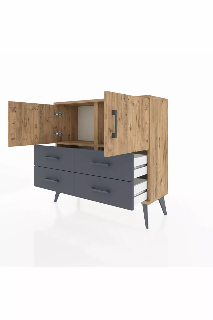 Arges Kommode mit 2 Regalböden, 4 Schubladen und 2 Türen, Kiefer-Kiefer/Anthrazit