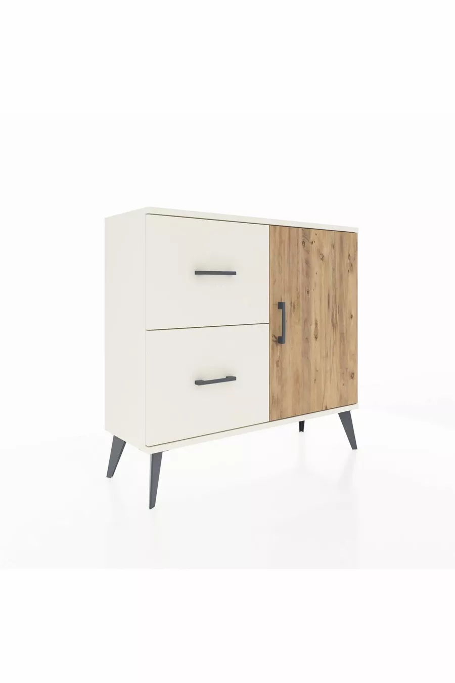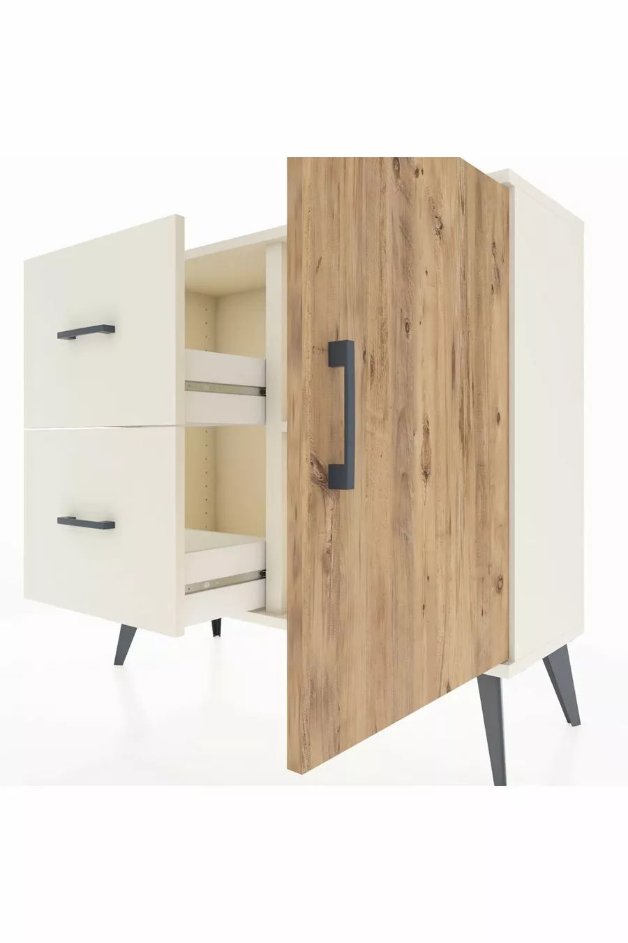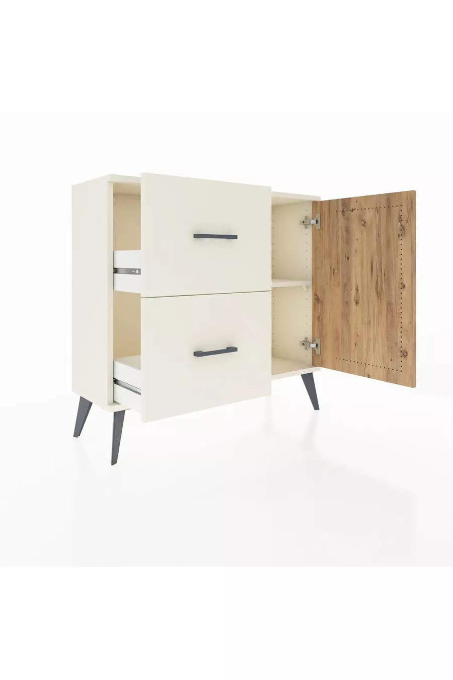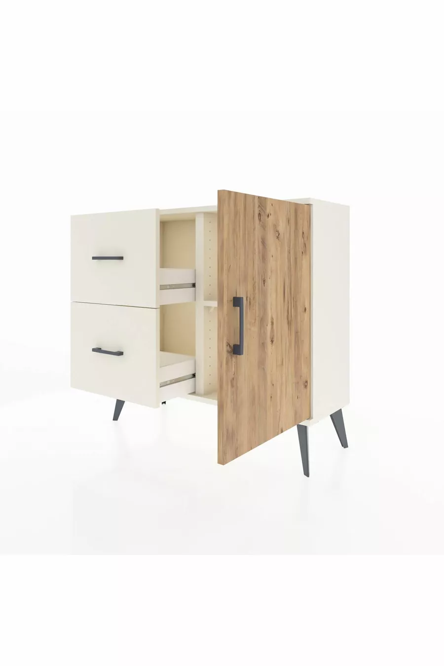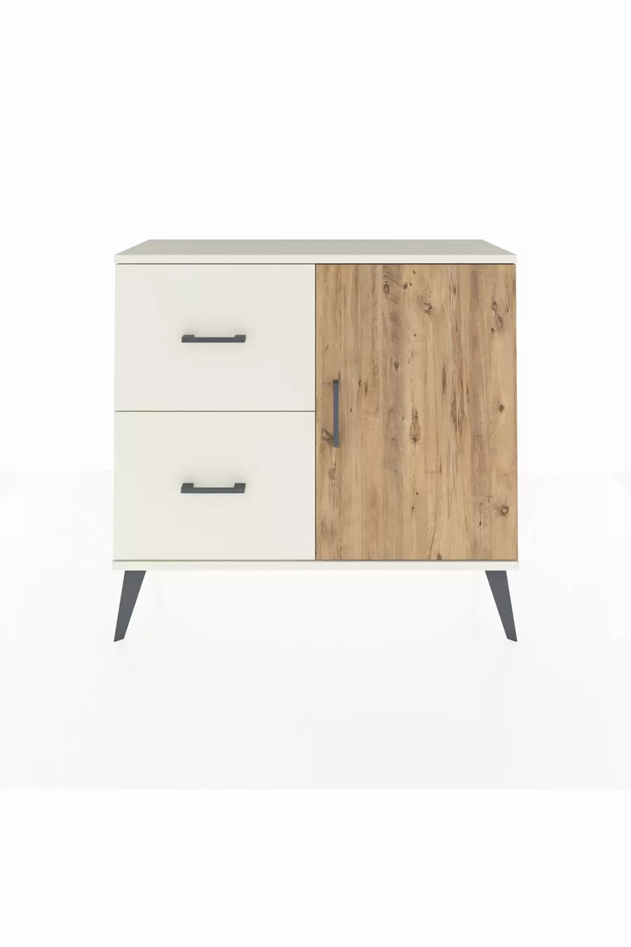 Arges Kommode mit einem Regal, 2 Schubladen und einer Tür, Mondstein-Kiefer/Mondstein