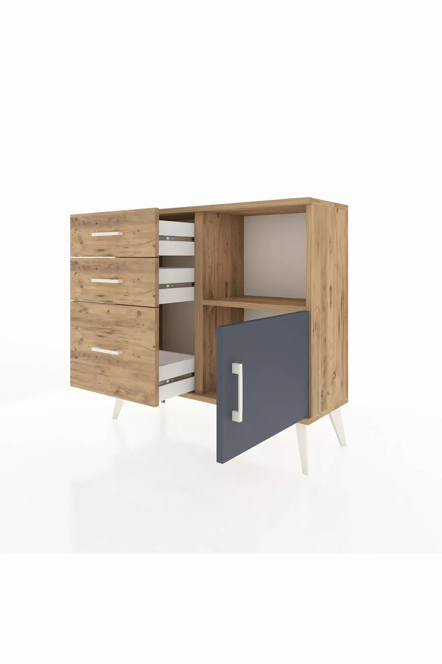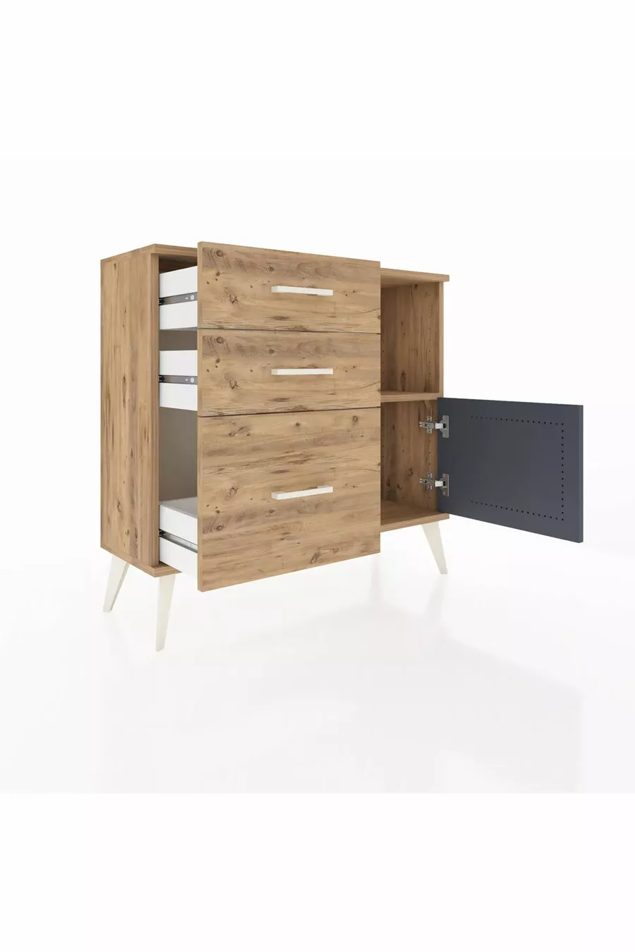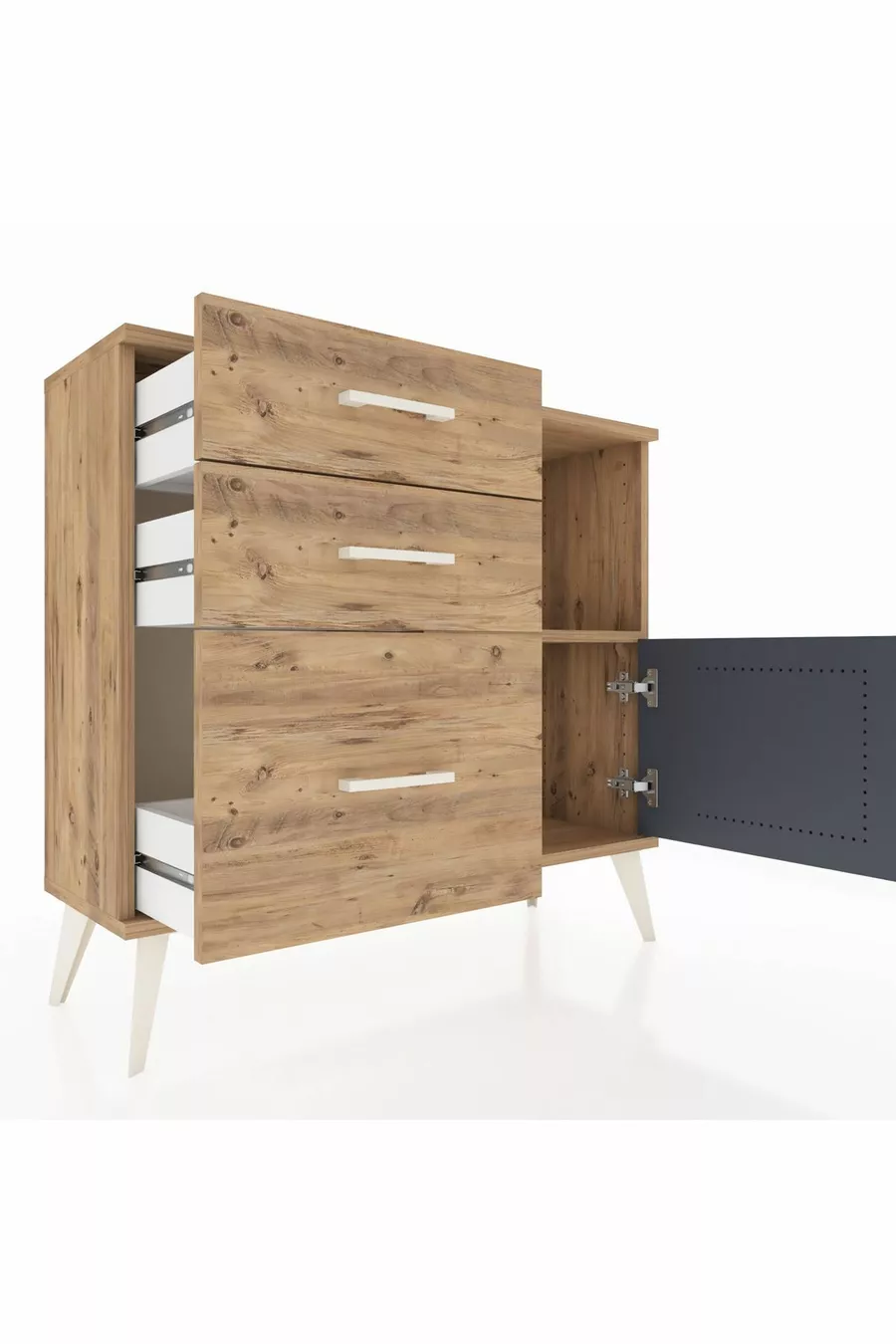 Arges Schrank mit einer Ablage, 3 Schubladen und einer Tür, Kiefer-Anthrazit/Kiefer