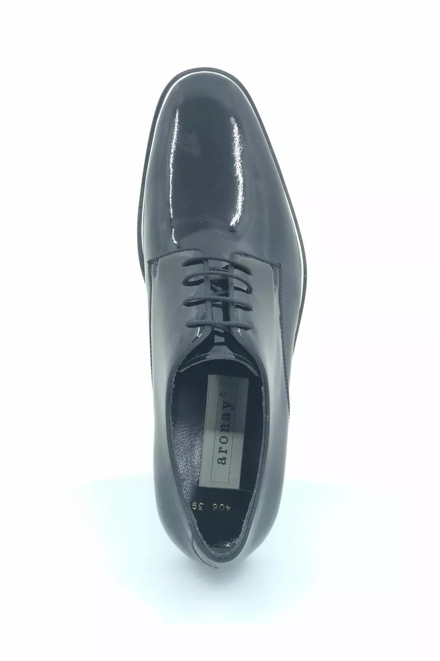 Aronay % Echtleder Schnürung Geripptes Jurdan Leder Herren Classic Schuhe Schwarz-Lackleder
