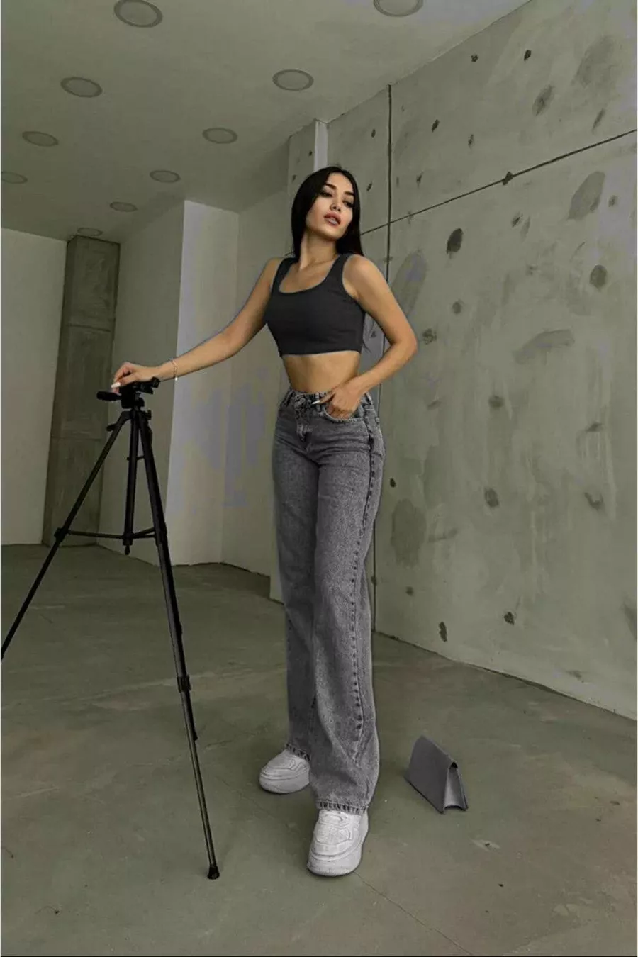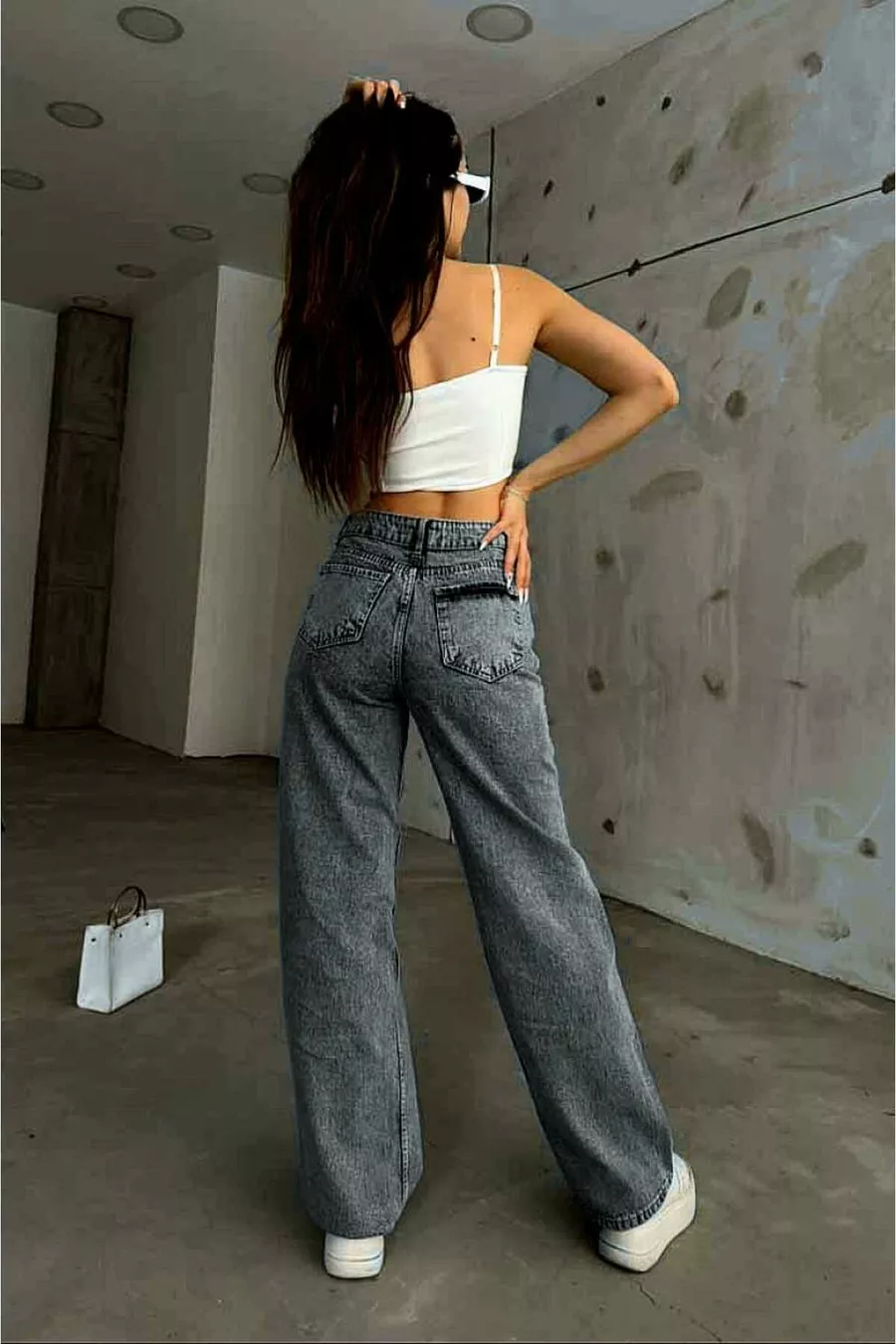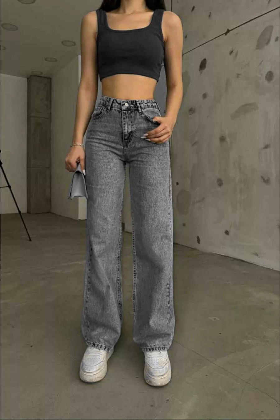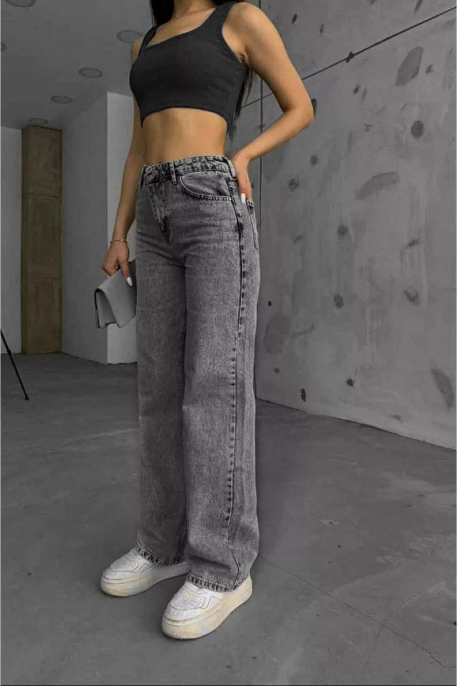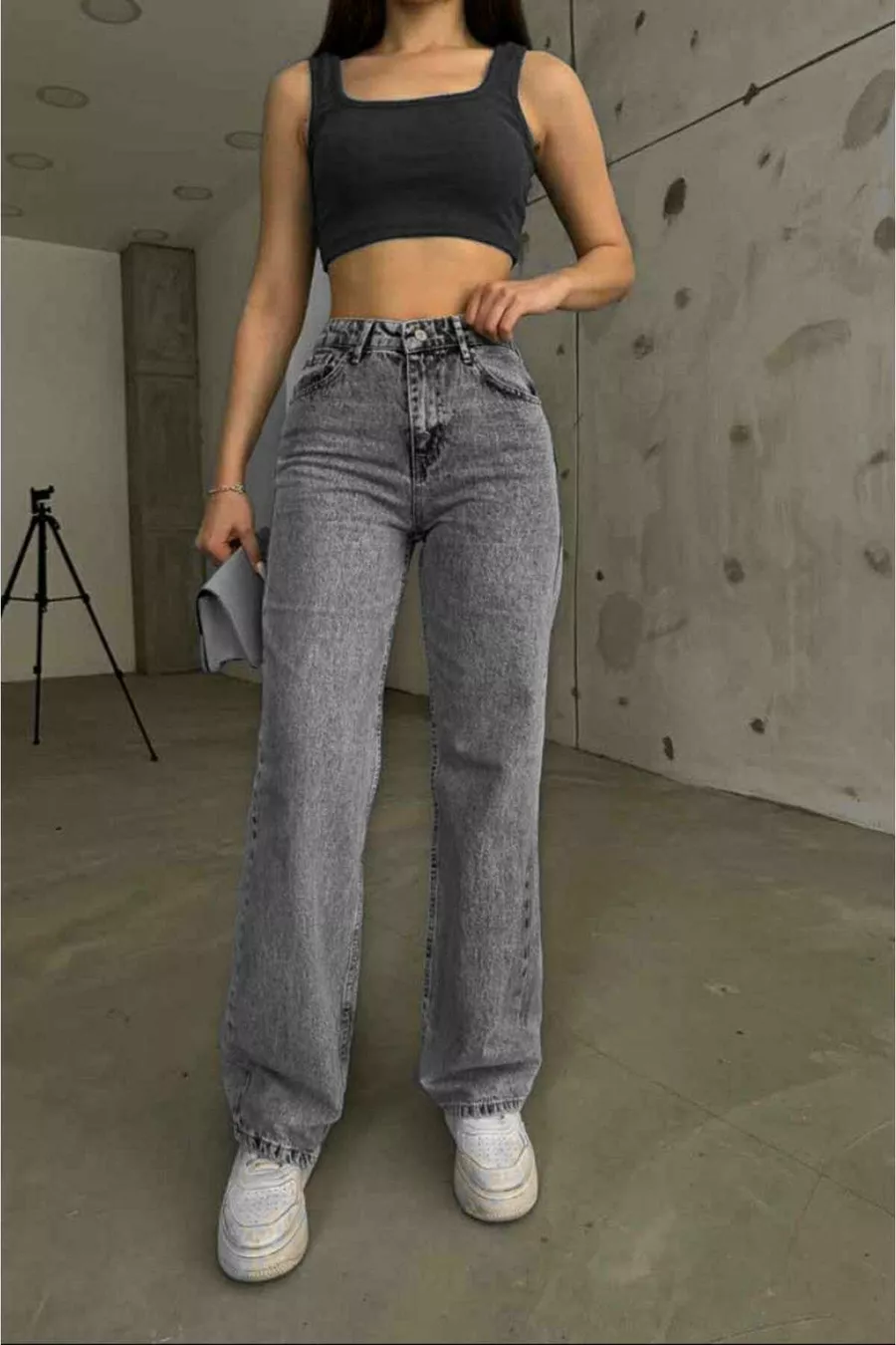 Arya Rauchgrau Snow Damen Locker Elastisch er Super Hohe Locker Weite Palazzo Jeanshose