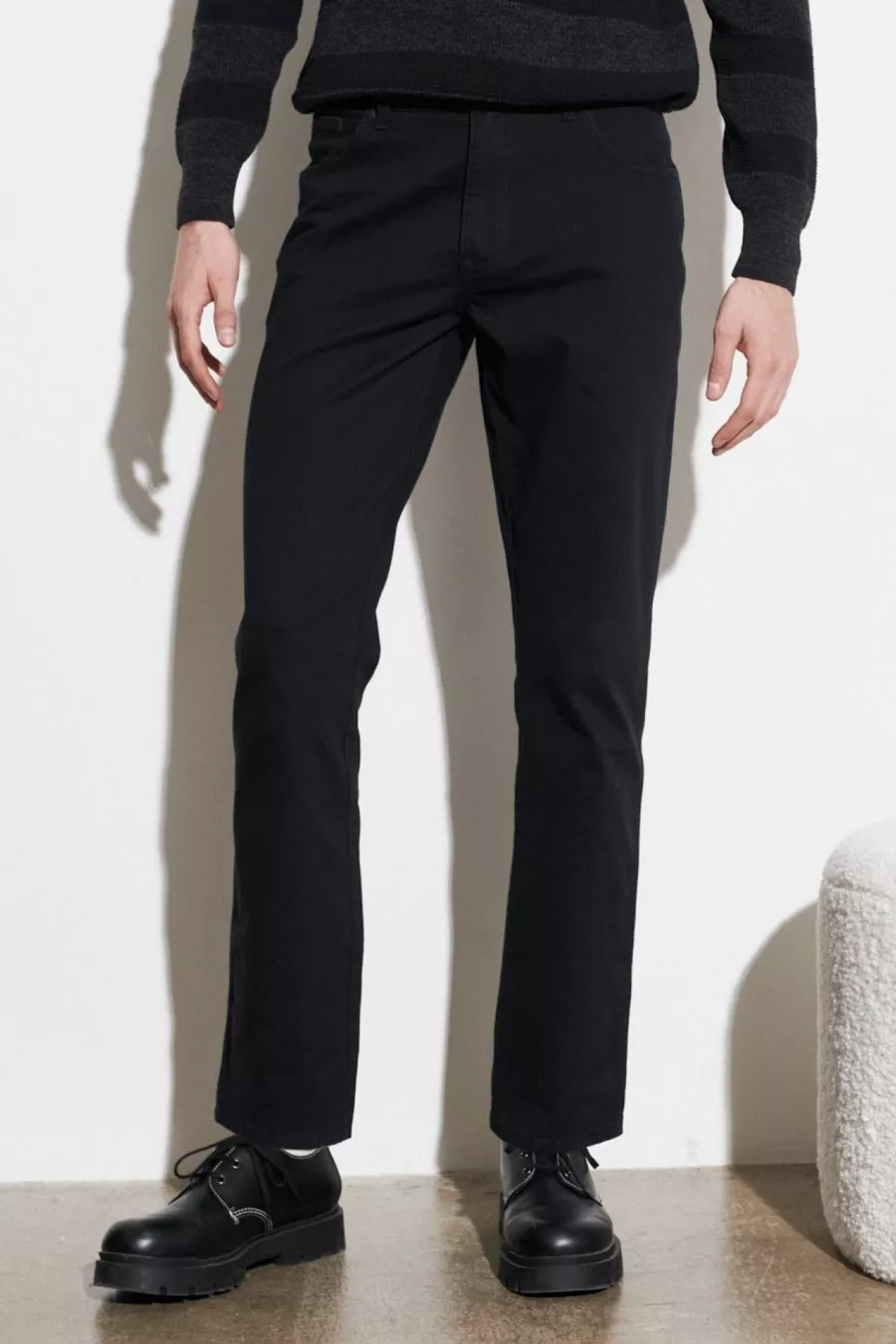 Beinbreite: Gerade Beinöffnung Gürtel/Gürtelstatus: Ohne Gürtel Bund: Normale Taille Farbe: Schwarz Material: Baumwolle Taschen: 5 Taschen Produkttyp: Gerade Kollektion: Denim Länge: Regulär Stoffart: Gewebe Silhouette: Gerade Anlass: Alltag Schnitt: Gerade Muster: Uni Zusätzliche Eigenschaften: Elastisch Verschlussart: Knopf + Reißverschluss Gewebetyp: Denim Nachhaltigkeitsdetails: Nein Persona: Modebewusst Materialzusammensetzung: 99% Baumwolle, 1% Elasthan Waschanleitung: Typ 1 Saison: Winter Herkunft: TR Verpackungsstatus: Ohne Box Packungsinhalt: Einzelstück