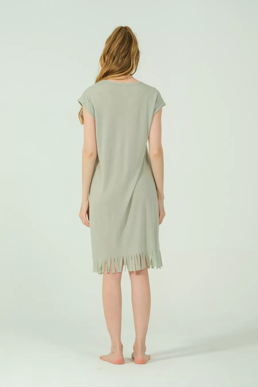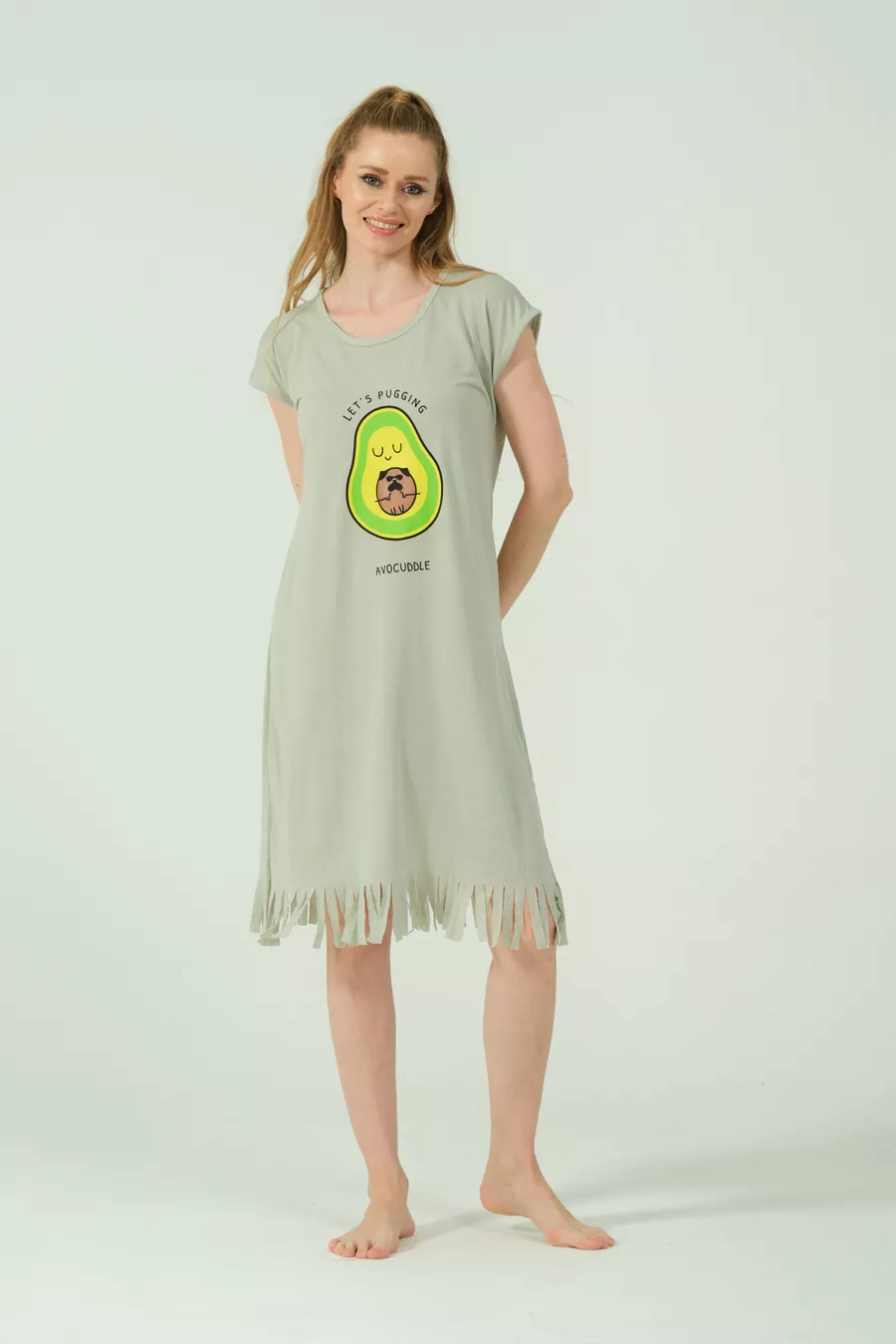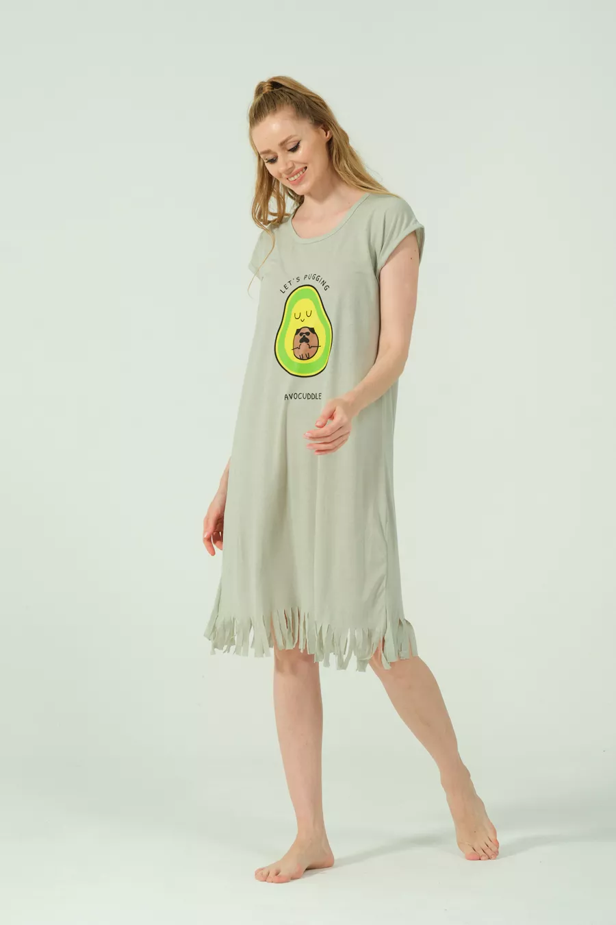 Avocado Muster Quasten Viskose Jersey Alltagskleid