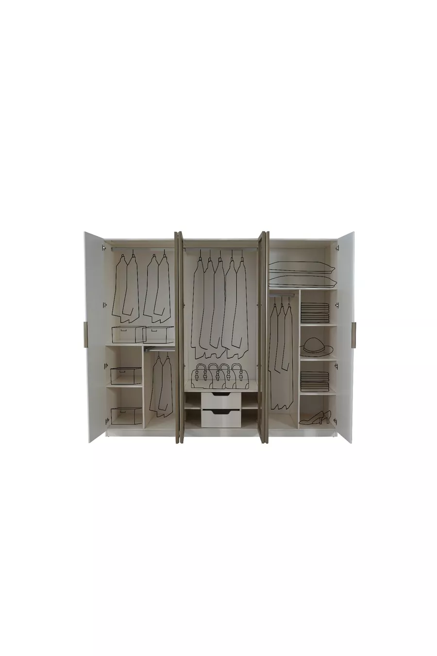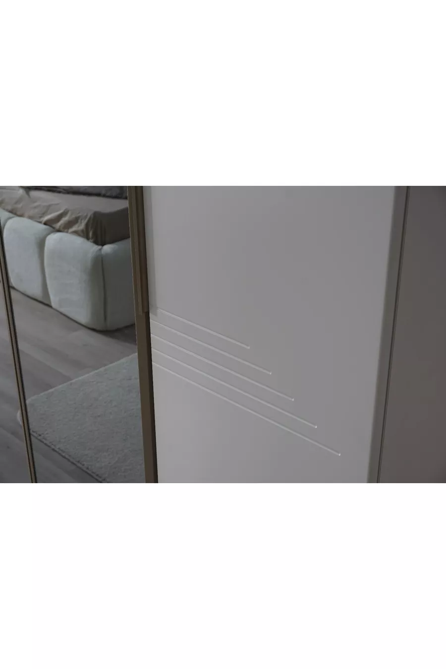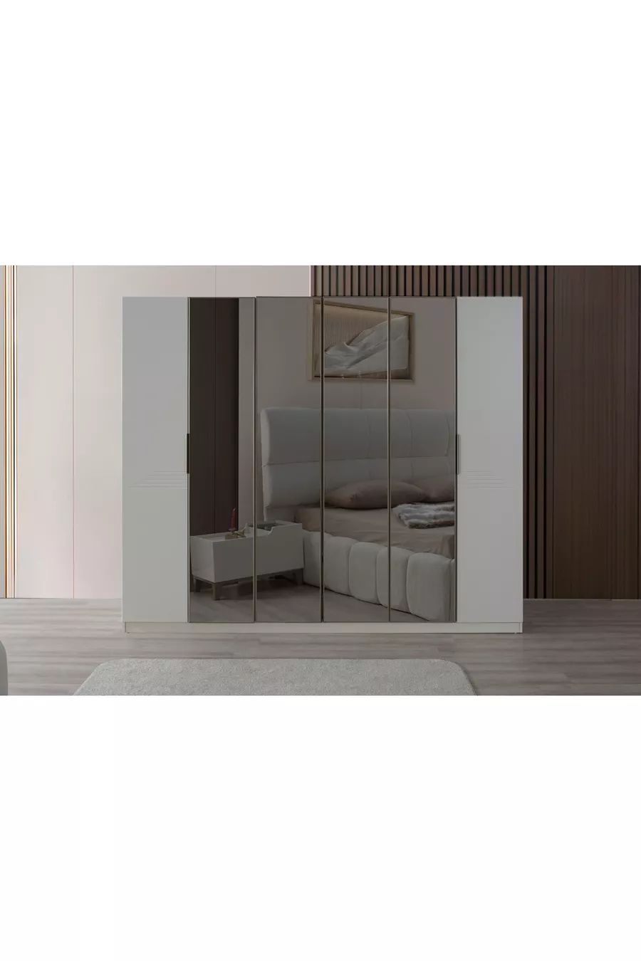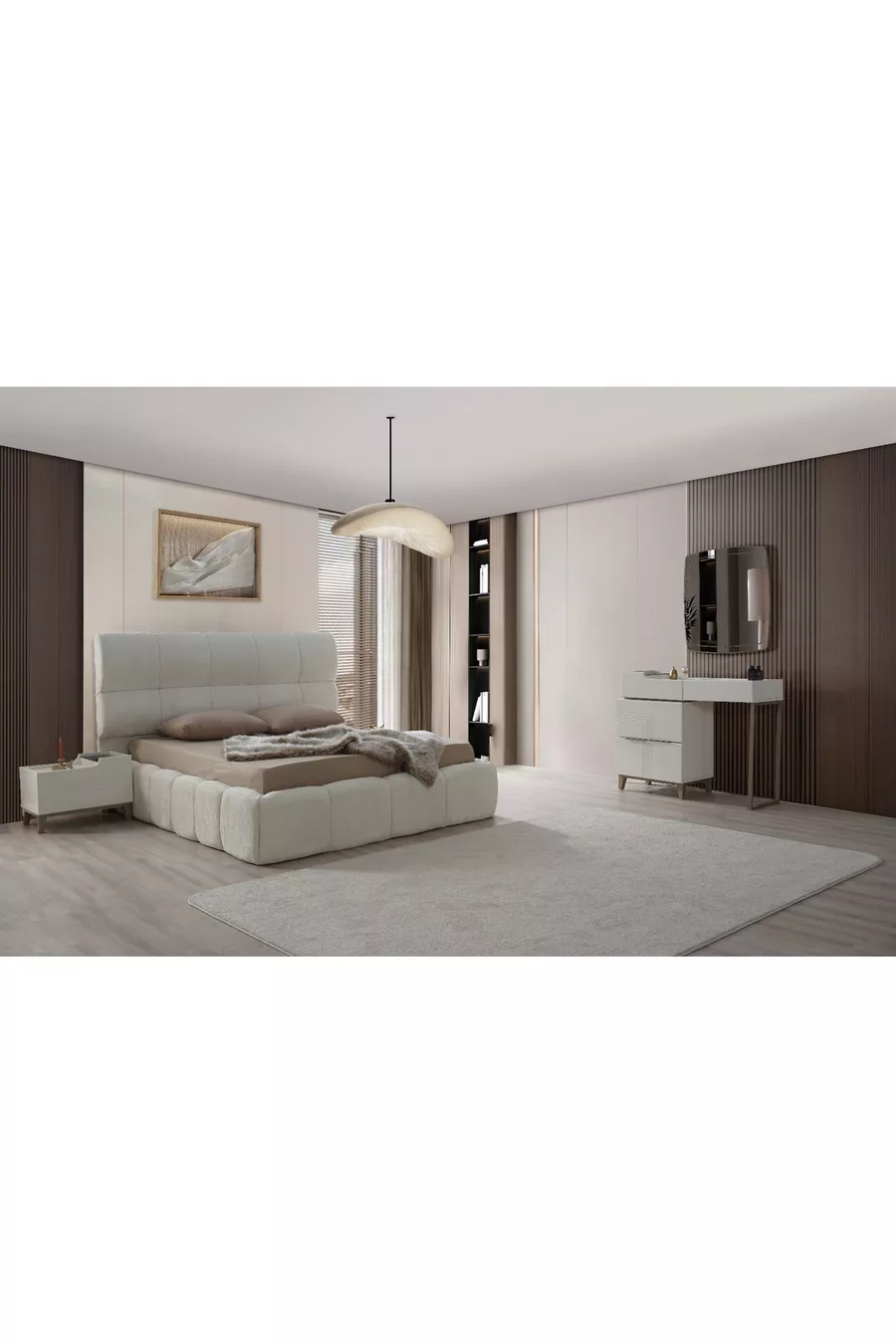 Setinhalt: Bett + 2 Nachttische + Kommode + Kleiderschrank + Spiegel