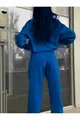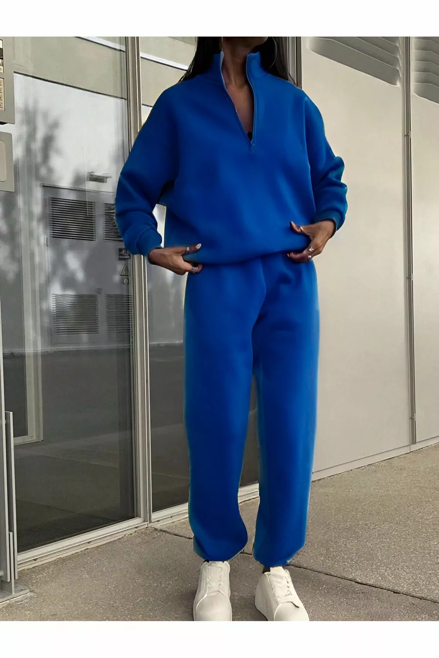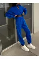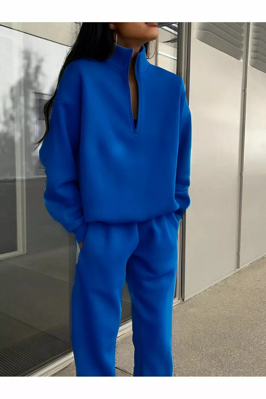 Basic Reißverschluss-Sweatshirt und Jogginganzug - Saxblau, Oversize, mit angerautem Stehkragen
